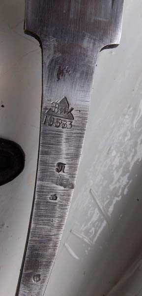 Не допускается никаких клейм на внешних поверхностях деталей шашек и кортиков. Все клейма ставились на стебле (хвостовике) клинка.