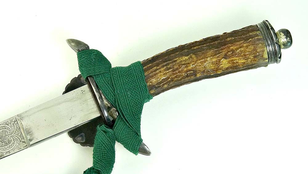 Рукоятки были из рога оленя. Эмблема имела вид головы оленя со свастикой. Крестовина была в виде двух копыт оленя.