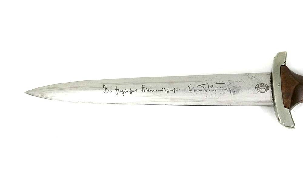 И Рем, и Виктор Латце, преемник Рема на посту начальника СА, санкционировали большое количество кинжалов с посланием. Как свидетельствуют специальные заказы, Рем разрешил присудить более 135 000 именных кинжалов членам СА и СС длительной службы. Это были стандартные кинжалы с лезвиями, выгравированными с надписью In Herzlicher Freundschaft Ernst Röhm («В искренней дружбе — Эрнст Рем»). Лишь очень небольшое количество этих травленных лезвий выдержало директиву Гитлера.