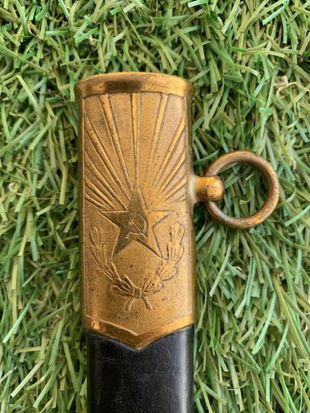 Подобно авиационному, общевойсковой кортик полностью повторял военно-морской образец 1945-го, за исключением художественного оформления устья ножен. На внешней стороне устья помещалась звезда с изображением серпа и молота на фоне расходящихся лучей, на внутренней — Спасская башня московского Кремля.