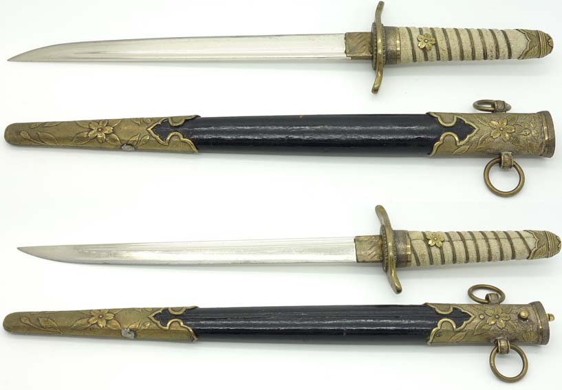 Эти кортики носили все офицеры. Многочисленные вариации встречаются в фурнитуре, отделке и качестве изготовления. Примеры, сделанные к концу Второй мировой войны, часто имитировали те же ручки, сделанные из пластика или композиционного материала. Модифицированный образец 1883 года все еще находится в производстве для современного японского флота. К сожалению, нет очевидных различий между моделями до 1945 года и современными, за исключением «новизны» последних и логотипа современного производителя. Лезвия на всех моделях военно-морского кортика, как правило, производятся серийно, с одной кромкой и желобками, хотя иногда встречаются примеры со старыми кованными вручную лезвиями танто.