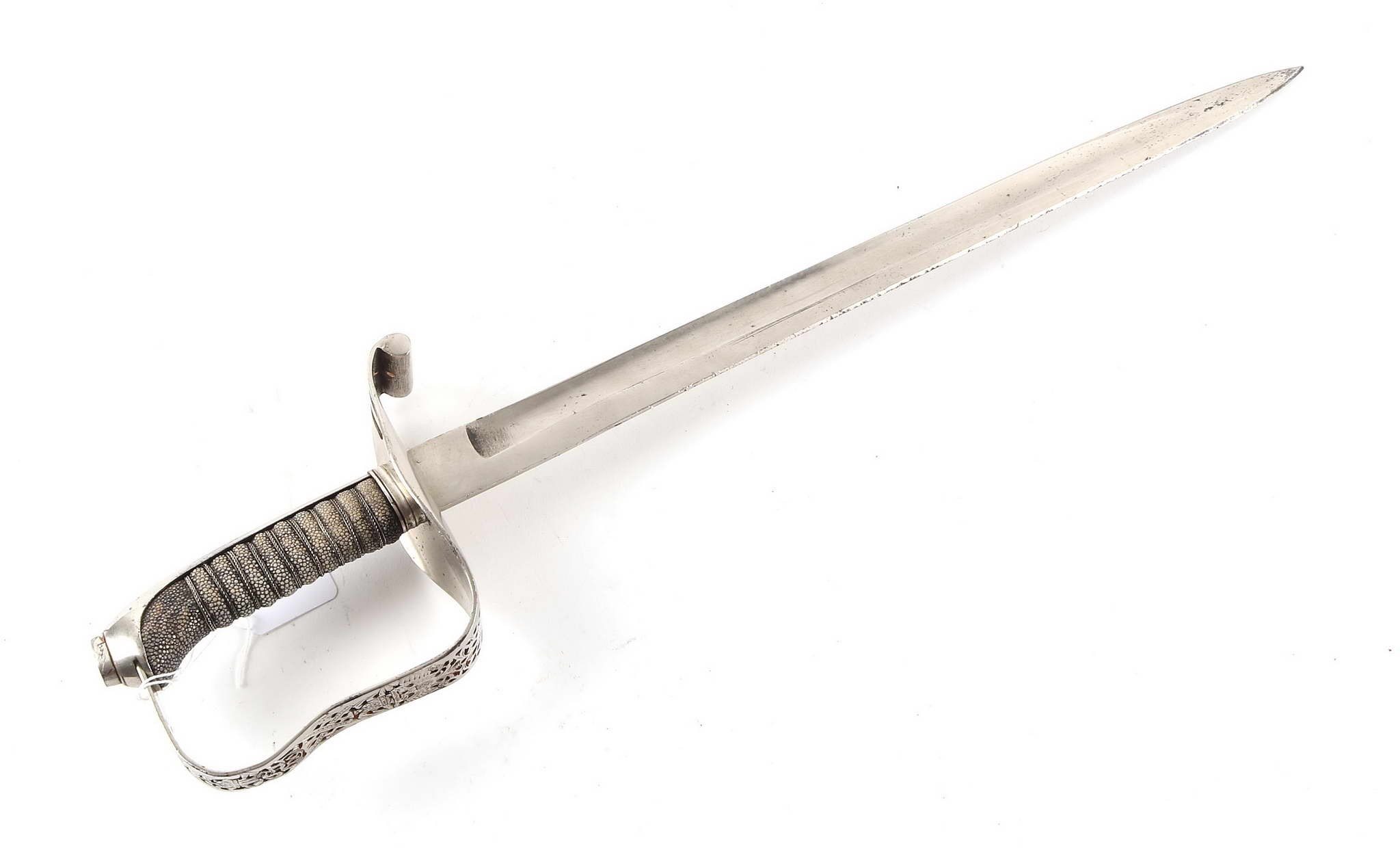 The light cavalry sabre of the model 1877 had a thin guard to protect the fingers of Bessemer steel. On the guard there is only one slot for attaching a saber or bracelet, and the handle made of wood (beech) is covered with blackened fish skin.