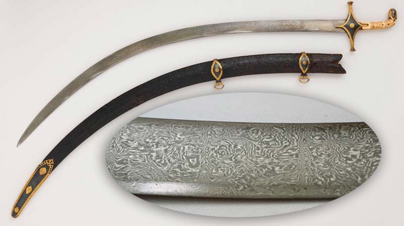 Most of the blades of Iranian sabers are made of bulat steel with a jet or cranked pattern. Their curvature smoothly begins from the heel and increases sharply at a distance of 1/3 of the length from the tip, however, there are blades and a slight curvature.