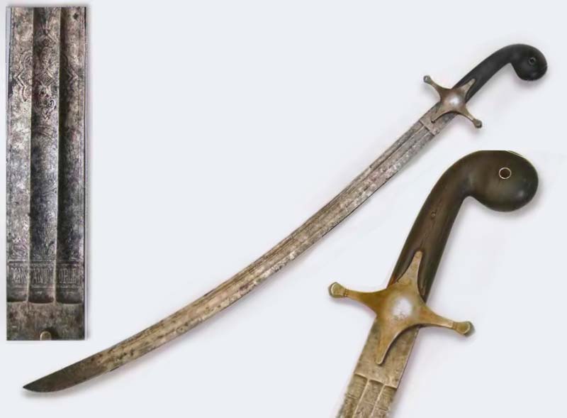 The blade is made by a European master. We also do not refer to the iron cross with short shoulders and wooden cheeks of the handle to the Turkish production. We find it difficult to determine the place of their manufacture and installation. Most likely, this is a much later (than the blade) finish in order to give the strip the appearance of a saber.