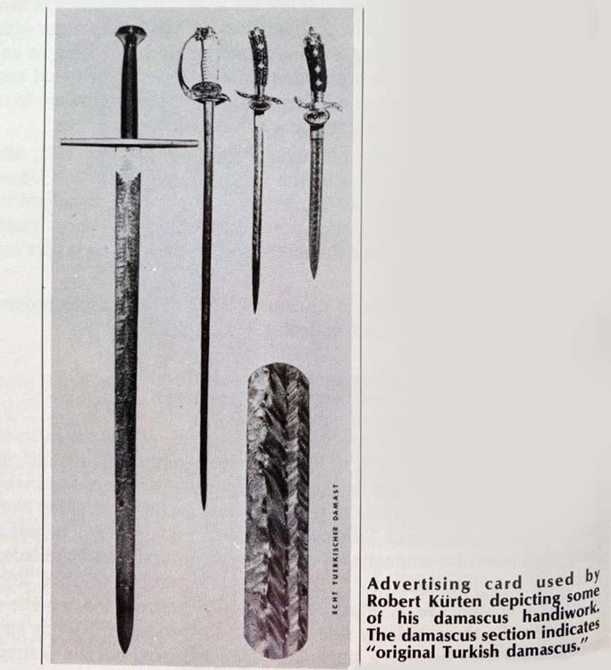 Robert Kürten's promotional card, which depicts some of his Damascus "handicrafts". The caption is "original Turkish Damascus".