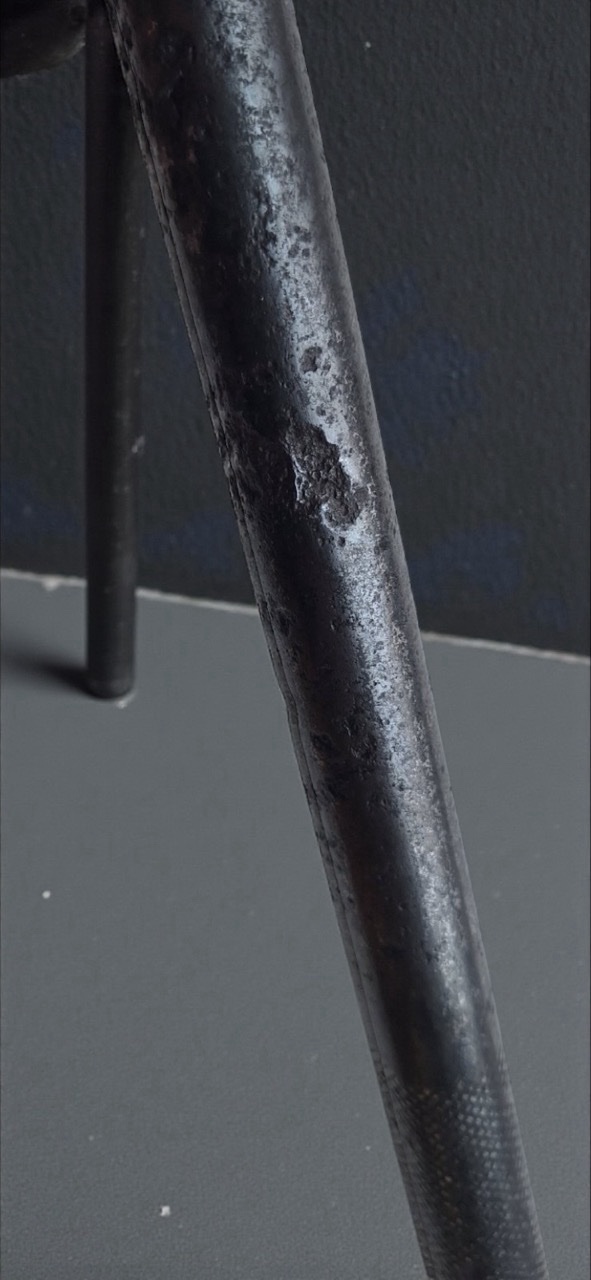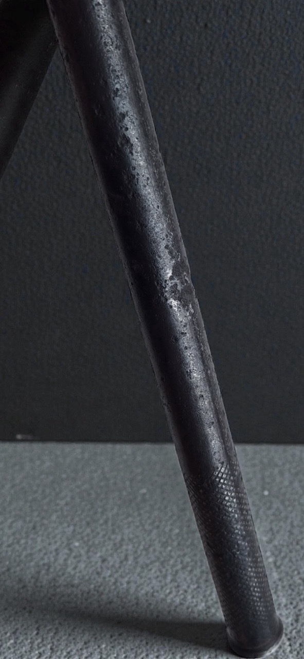 The shaft is tubular and cylindrical in shape. It is secured in the socket hole. A narrow technological seam runs along the entire length of the tube. The lower part of the shaft features a characteristic weapon knurling in the form of small diamonds. The shaft is entirely made of metal, which according to classification, categorizes it strictly as a cavalry type of mace.