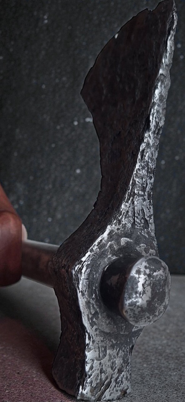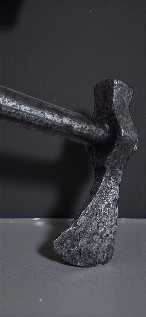 The socket is massively attached to the short neck of the blade. The poll is of classic design. This element served as a combat and inertial counterweight.