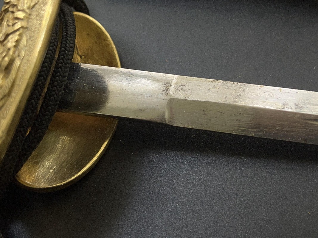 Accessories: Temlag. Features: Owner’s monogram on the rear brim of the sword.