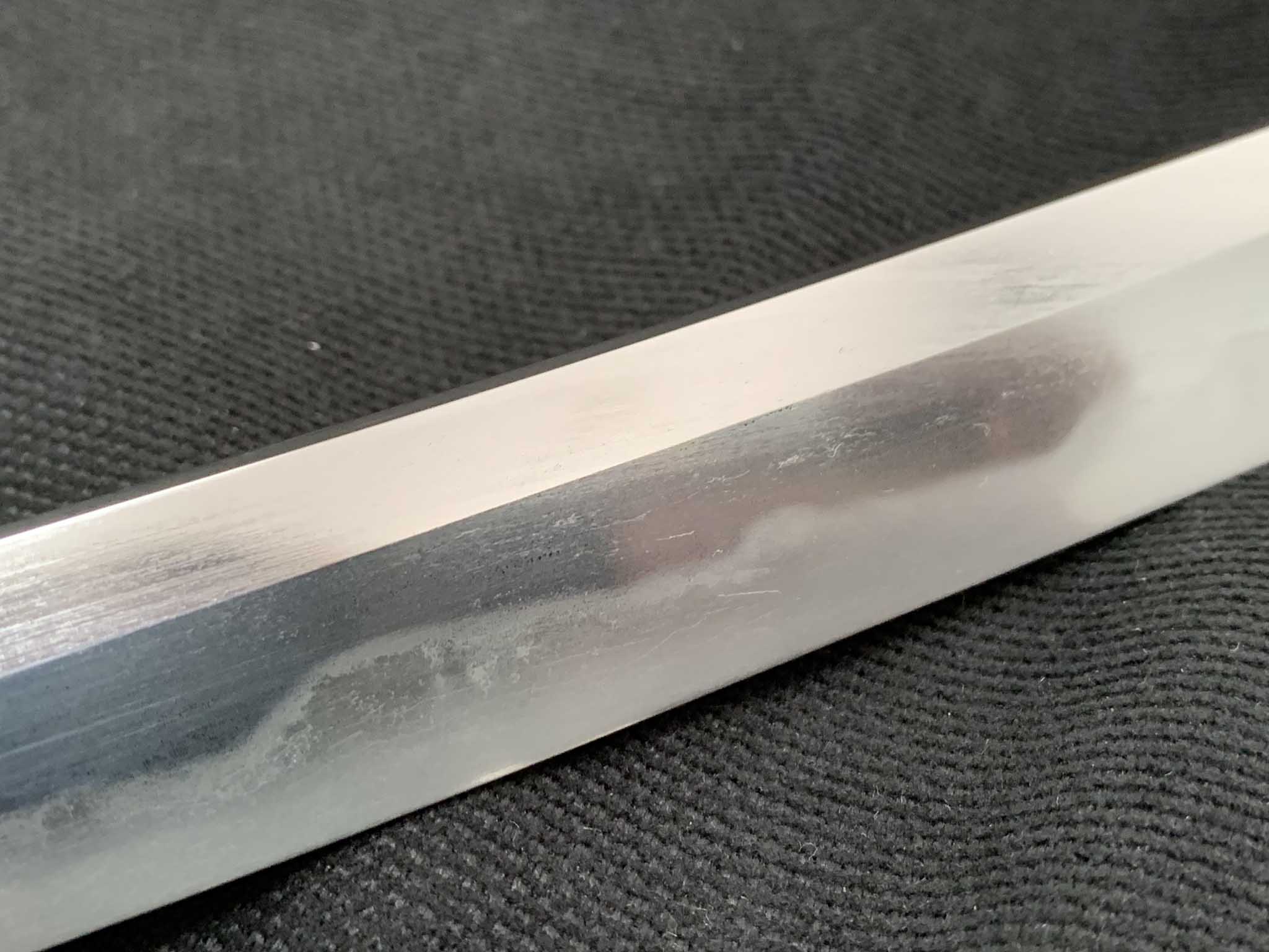 Форма клинка в стиле синогидзукури с ребром синоги и прогибом сакидзори (изгиб вверху). Хамон (узор лезвия) сложный комбинированный с сплетением стилей мидаре (волны) и сугу-ни-ко-мидарэ-ха (прямой с малым беспорядком). Кисаки (кончик меча) типа ко-кисаки (маленькая вершина). Хвостовик (Накаго) в приятной не тронутой патине, имеет одно отверстие (мекуги-ана) для крепления рукояти.