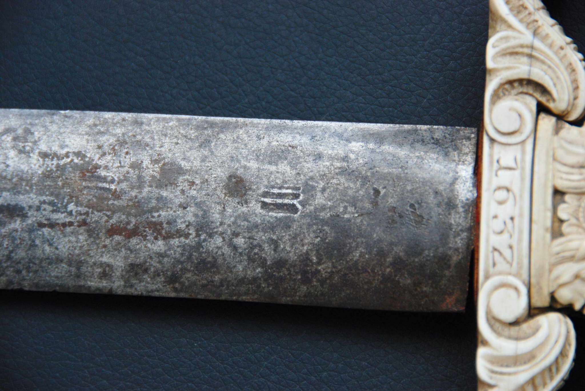 На клинке есть неопределенная метка и остатки старой коллекционной бирки.