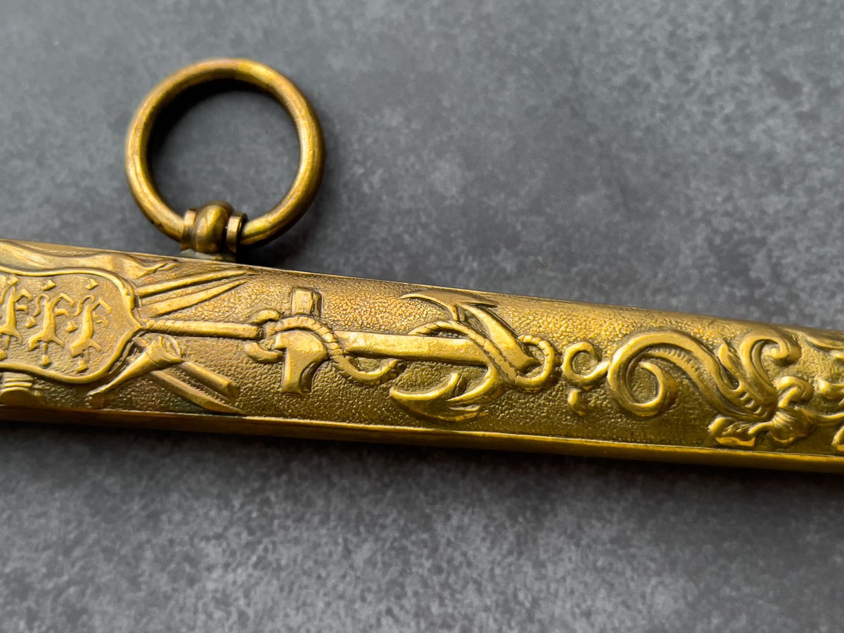 Этот кортик был частью офицерской формы и использовался морскими офицерами, демонстрируя высокий уровень изготовления и функциональности. Оригинально разработанный для использования на море, кортик имел отличные боевые качества и эстетический дизайн.