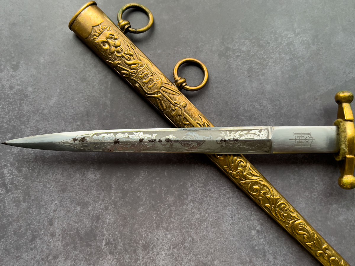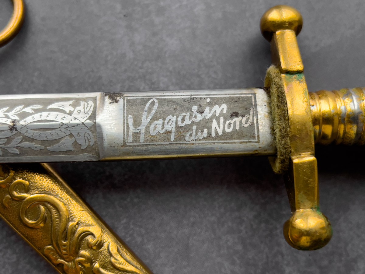 Клеймо дистрибьютора «Magasin du Nord» из Копенгагена указывает на то, что кортик был импортирован и распространялся в Скандинавии. «Magasin du Nord» был известным розничным магазином в Дании, который специализировался на роскошных и военных товарах, что добавляло еще одну уровень исторической значимости этому кортику