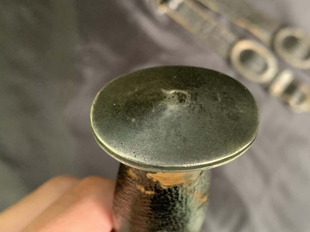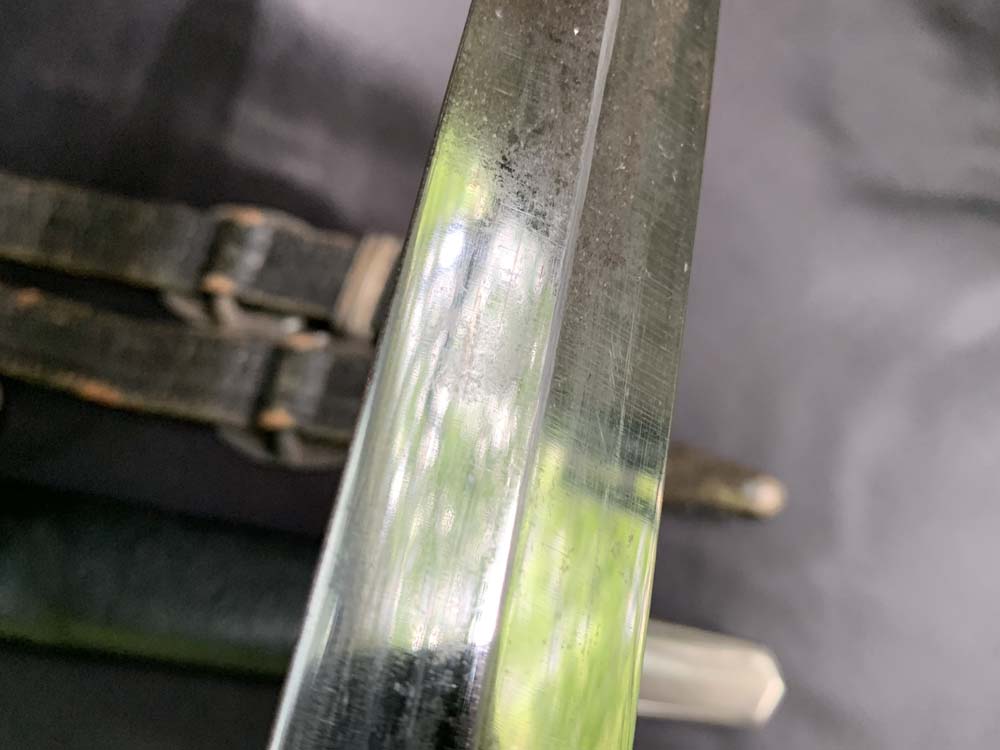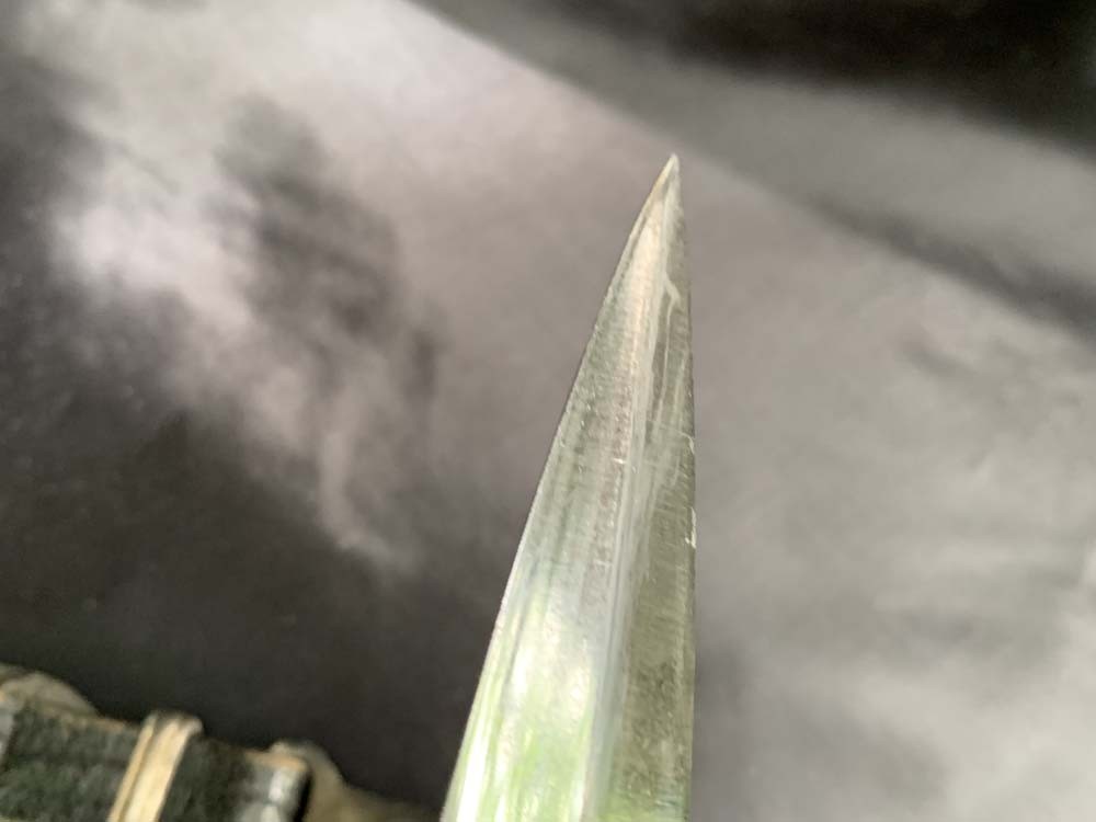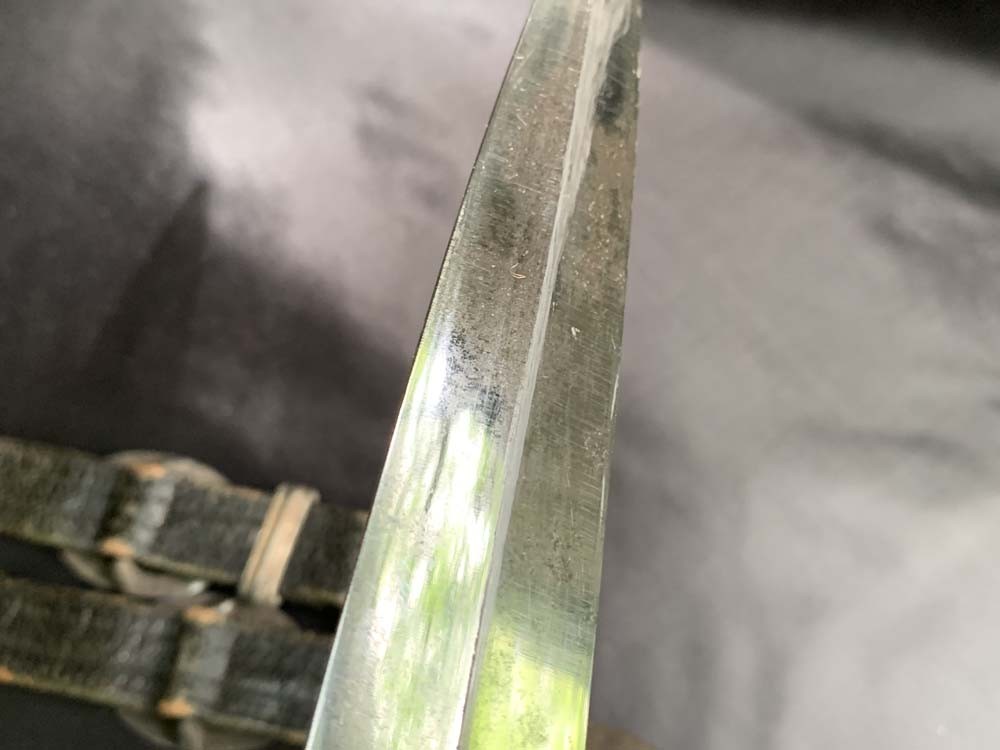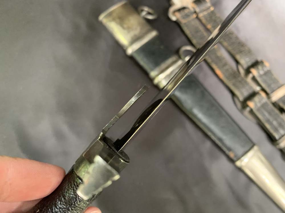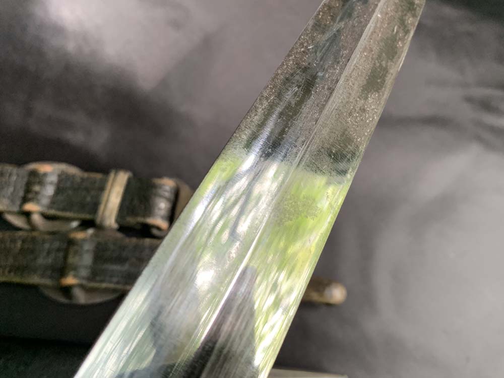 Клинок плоский прямой ромбического сечения. Возле пяты клинка с тыльной стороны – травлёное клеймо в виде меча в овале и надпись «Paul Weyersberg, Solingen» — клеймо немецкой фирмы производителя Пауль Вайерсберг Золинген.