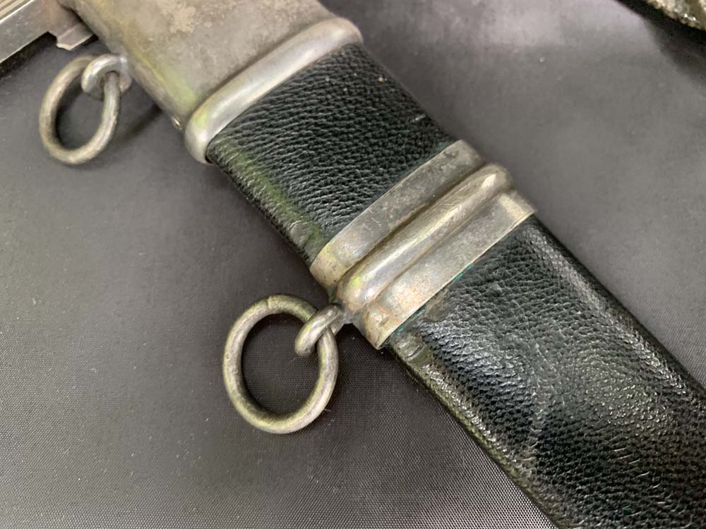 Ножны металлические, обтянутые кожей. Прибор ножен из белого металла. Ножны содержат две металлические вставки, покрытые серебром. Подвес кинжала старшего командного состава RLB, образца 1936 года представлял собой карабин на кожаном ремешке, прикрепленный к присоединительному кольцу на ножнах.