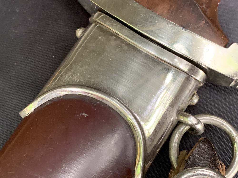 Ножны металлические, крашеные в коричневый цвет. Прибор ножен металлический, никелированный, крепится к ножнам четырьмя винтиками. Состоит из устья и наконечника с изогнутыми рельефными краями. На устье имеется подвижное кольцо для крепления ремешка портупеи.