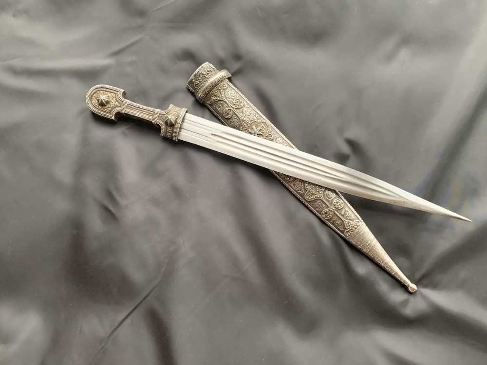 На продажу выставлен Грузинский кинжал кама в серебряной оправе конец XIX- начало XX века.