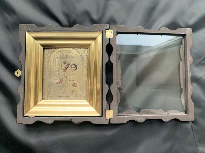 На продажу выставлена Икона Божья Матерь Тихвинская в деревянном киоте. В хорошем коллекционном состоянии.