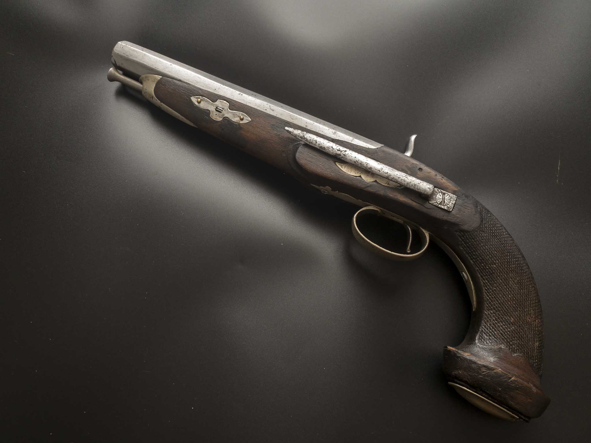 Данный антикварный пистолет имеет историческую ценность и не может использоваться как огнестрельное оружие, так как использовался в тот период более слабый порох так называемый «Черный».