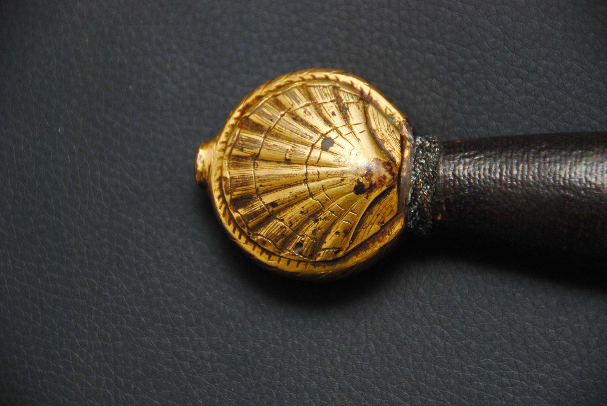 Гарду нередко украшали выгравированными изображениями скрученной виноградной лозы или орнаментом в виде листьев. Эргономичная рукоятка, облицованная, как правило, слоновой или обычной костью, сверху и снизу от центрального утолщения была снабжена углублениями для пальцев. Пустотелые заклепки, скреплявшие костяные щечки с хвостовиком, зачастую украшались вставками с великолепным геометрическим орнаментом. Округленная головка, составлявшая единое целое с рукоятью, практически всегда увенчана позолоченным металлическим колпачком.