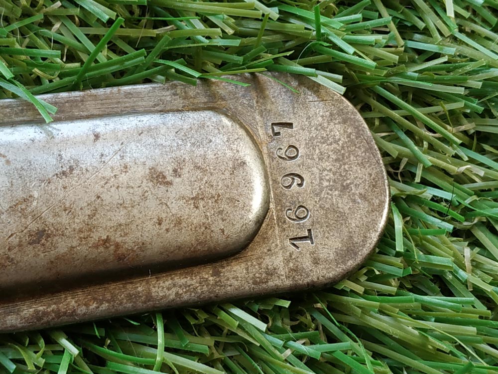 Клинки заводского производства, изготовленные по технологии из одного куска, имеют традиционную форму синоги-дзукури. Штамп стоит возле латунного хабаки (воротник на основании клинка). В него входят один или два японских иероглифа и арабские цифры номеров в пределах от двух до трех сотен тысяч. Похоже, что номера являются продолжением маркировки предшествующего образца.