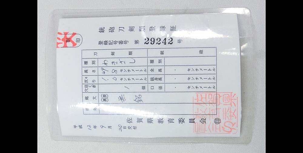 Традиционный японский самурайский меч типа вакидзаси (Период Кото) относиться к несовременному оружию и используются исключительно для коллекционирования и экспонирования.