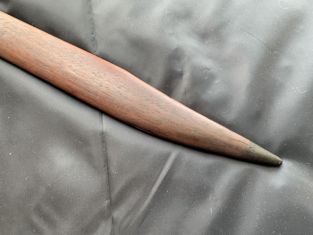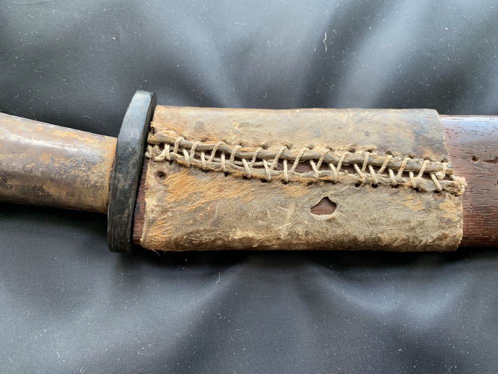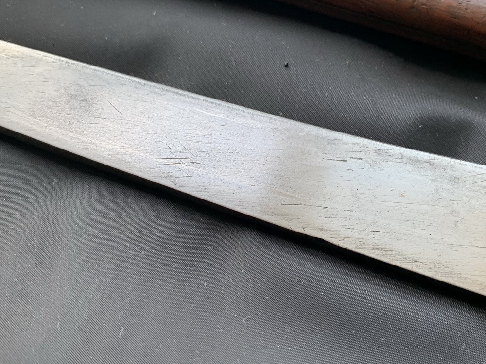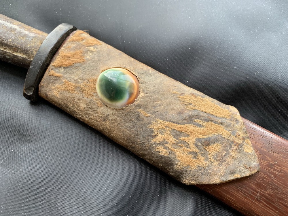 У него было длинное, прямое, одностороннее лезвие, более широкое на конце, чем у эфеса, часто с цилиндрическим по форме выступом из тупой стороны, недалеко от острия. Обычные ножны были сделаны из двух деревянных кусков, повторявших форму