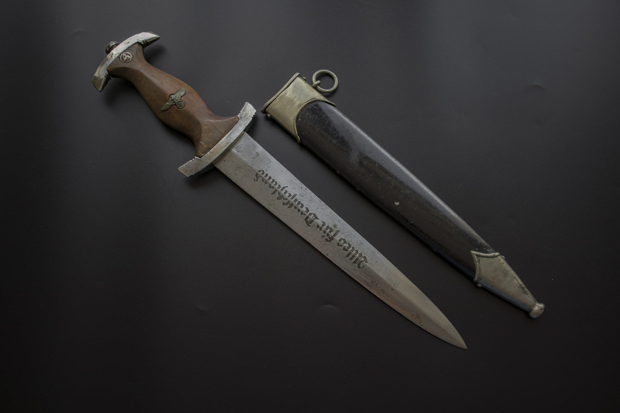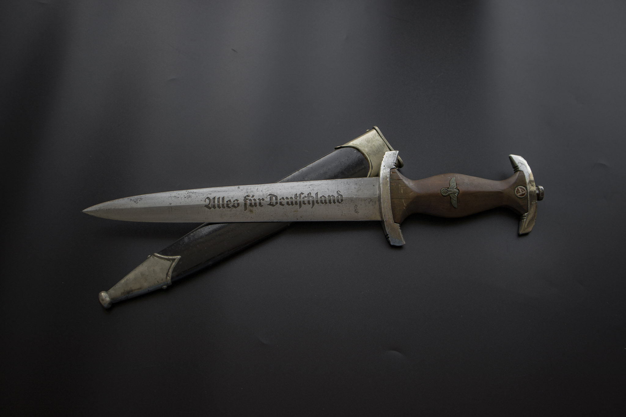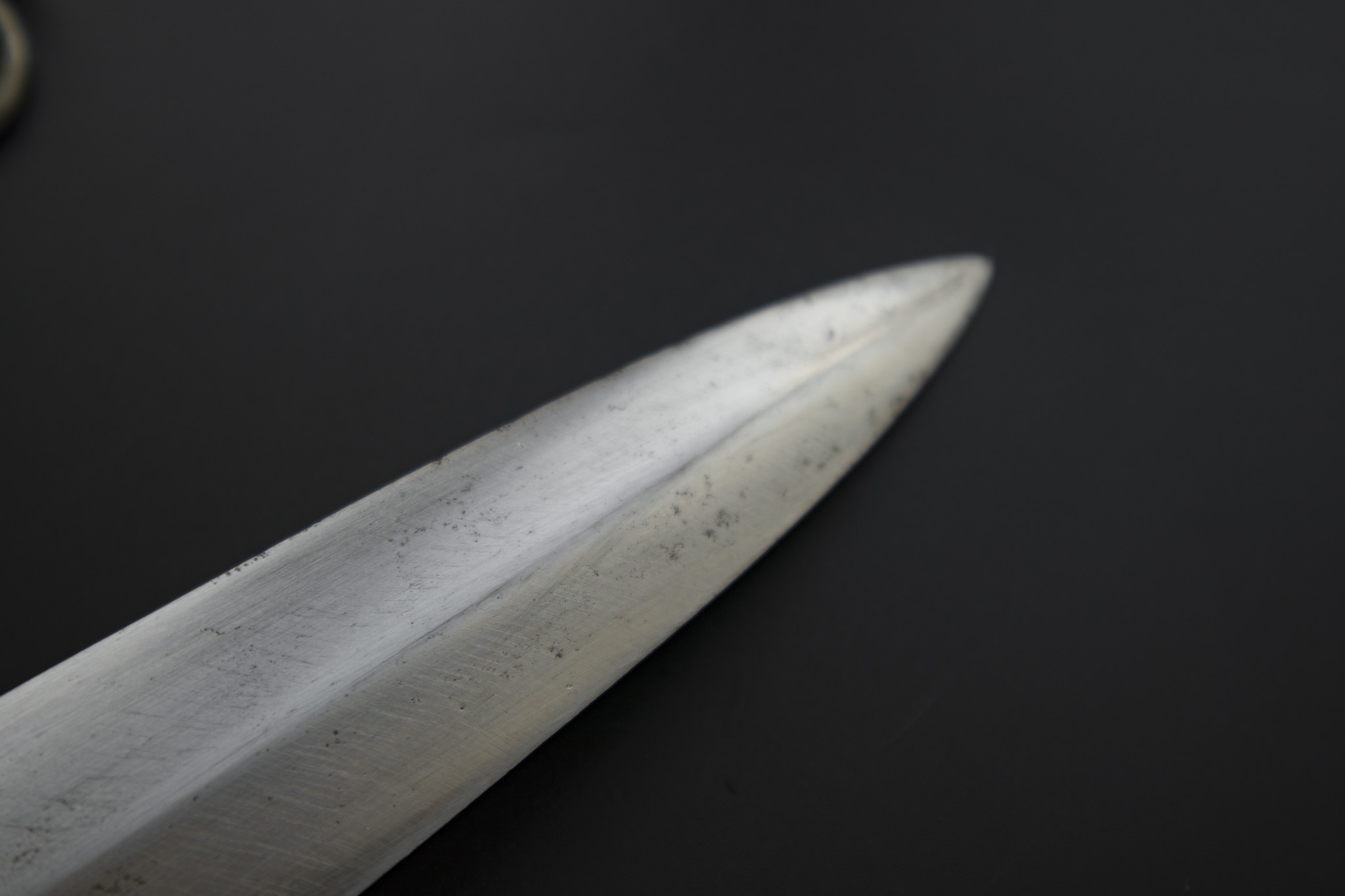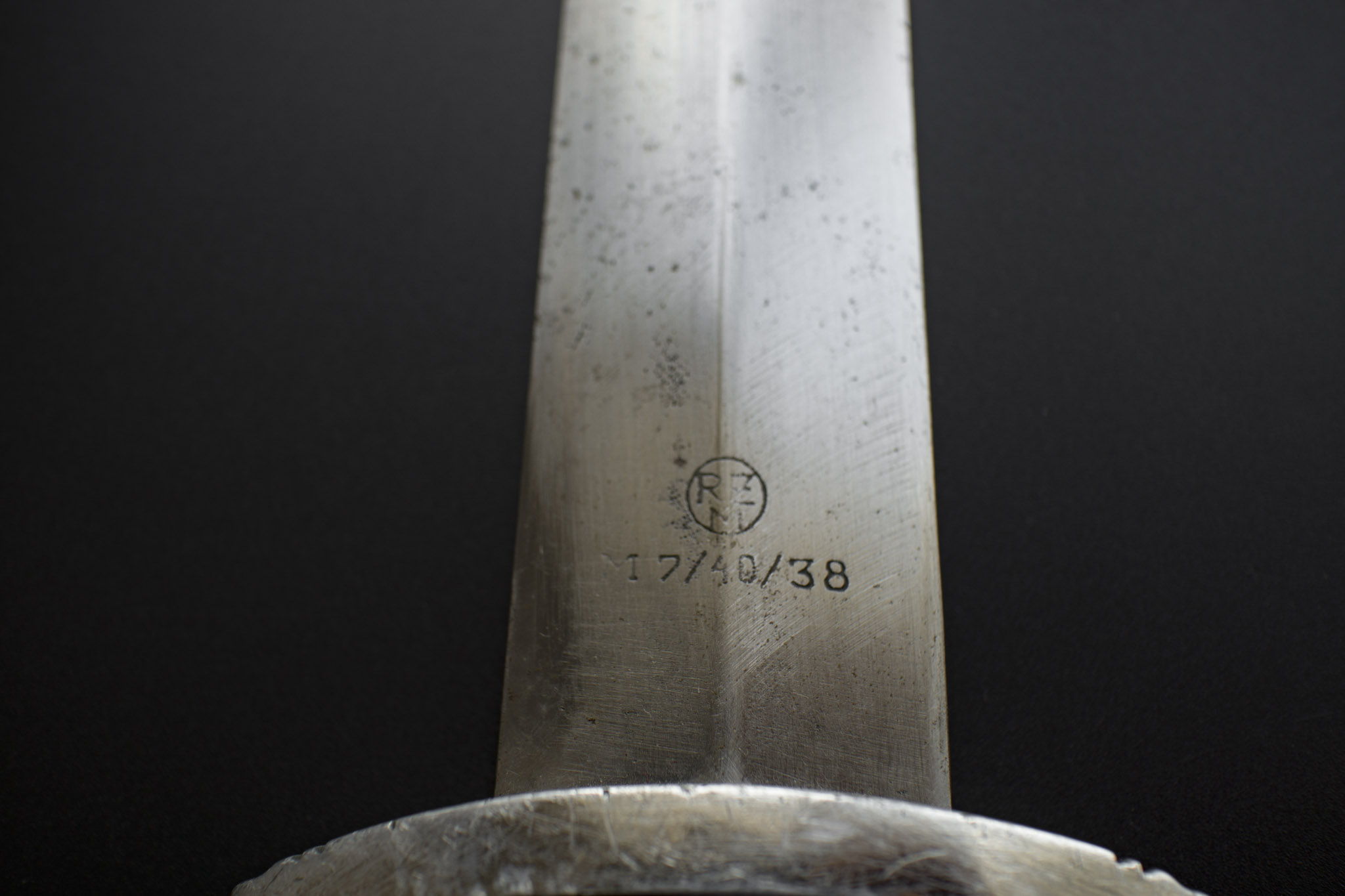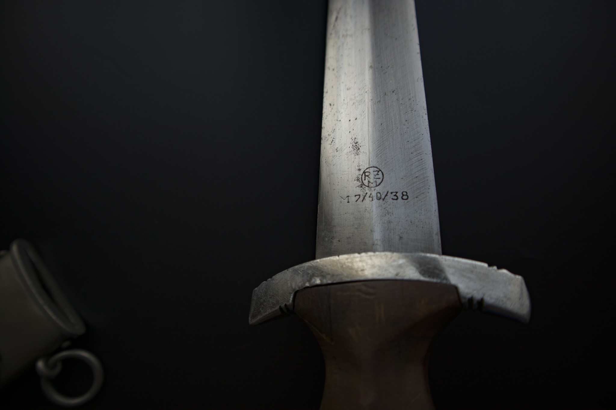 Клинок прямой, ромбовидный, двулезвийный. Клинок украшен травленым девизом «Alles fur deutschland», что переводится как «Все для Германии». на оборотной стороне на пяте нанесено клеймо
