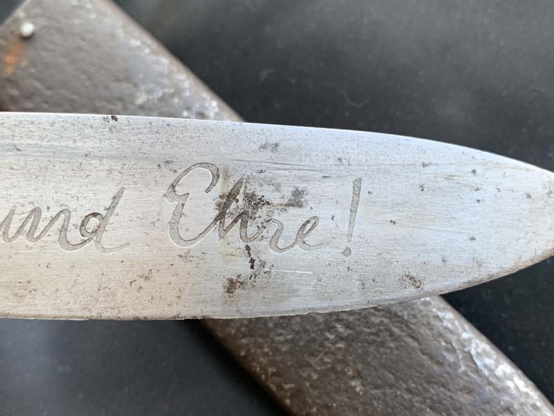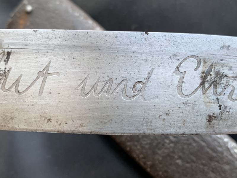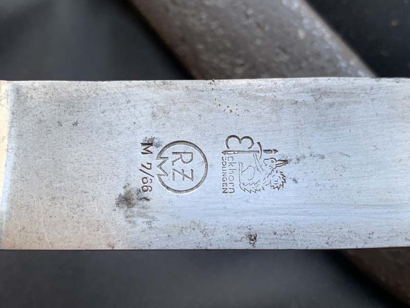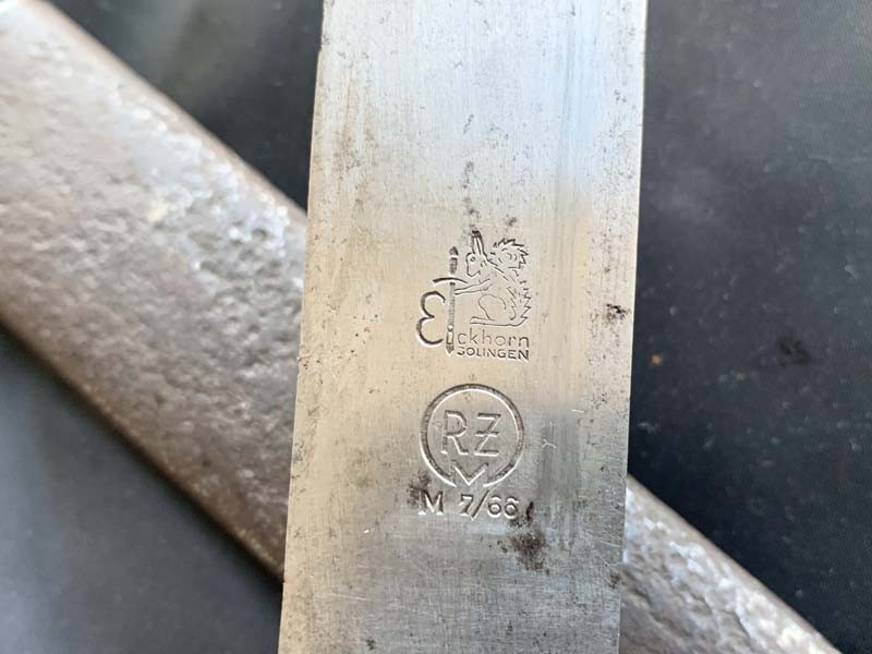 Крестовина прямая, с одной стороны, загнутая к рукояти. Клинок чистился. На клинке с односторонним лезвием на лицевой стороне нанесен девиз «Blut und Ehre» (Кровь и Честь), а на обратной стороне — проставлена дата и отметка контроля качества RZM M 7/66 и клеймо производителя Carl Eickhorn.