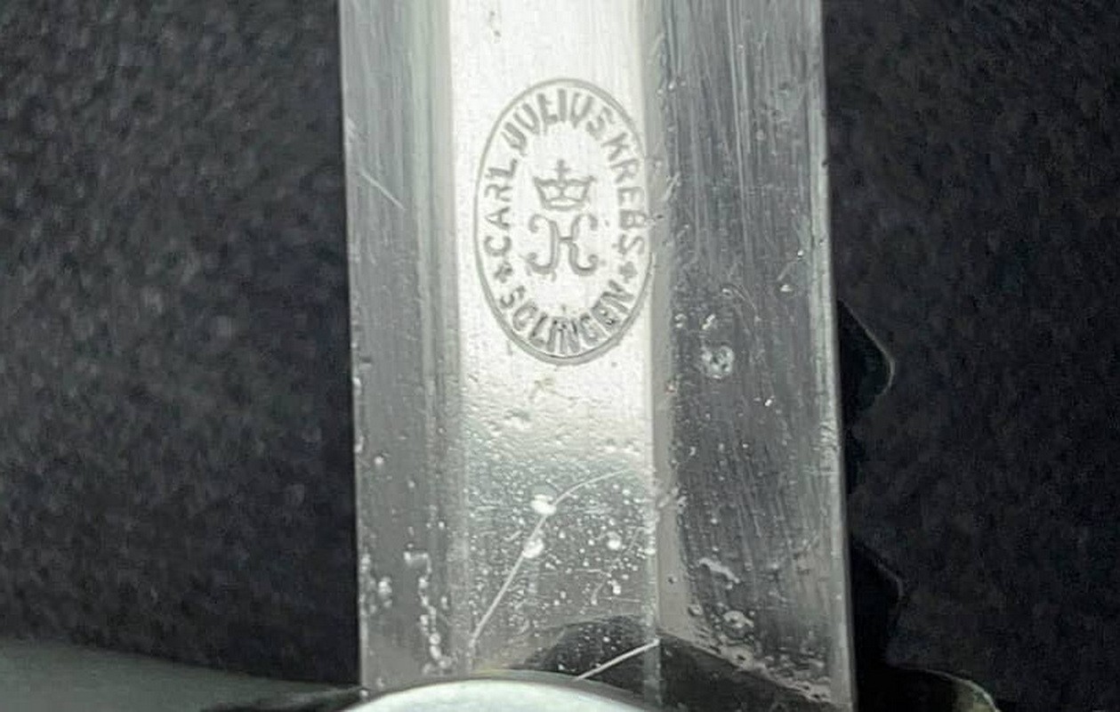 Клинок стальной, прямой, плоский, шестигранный, двулезвийный, полированный, без пяты. На клинке штампом нанесено клеймо производителя Carl Julius Krebs.