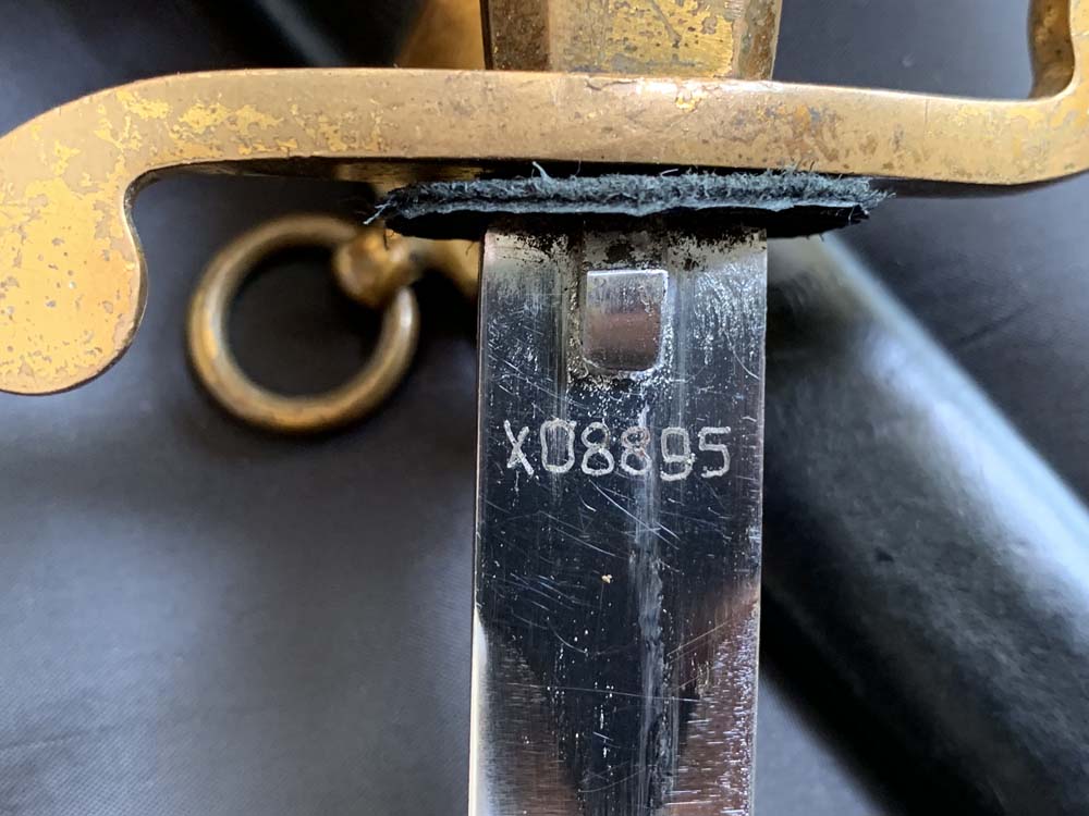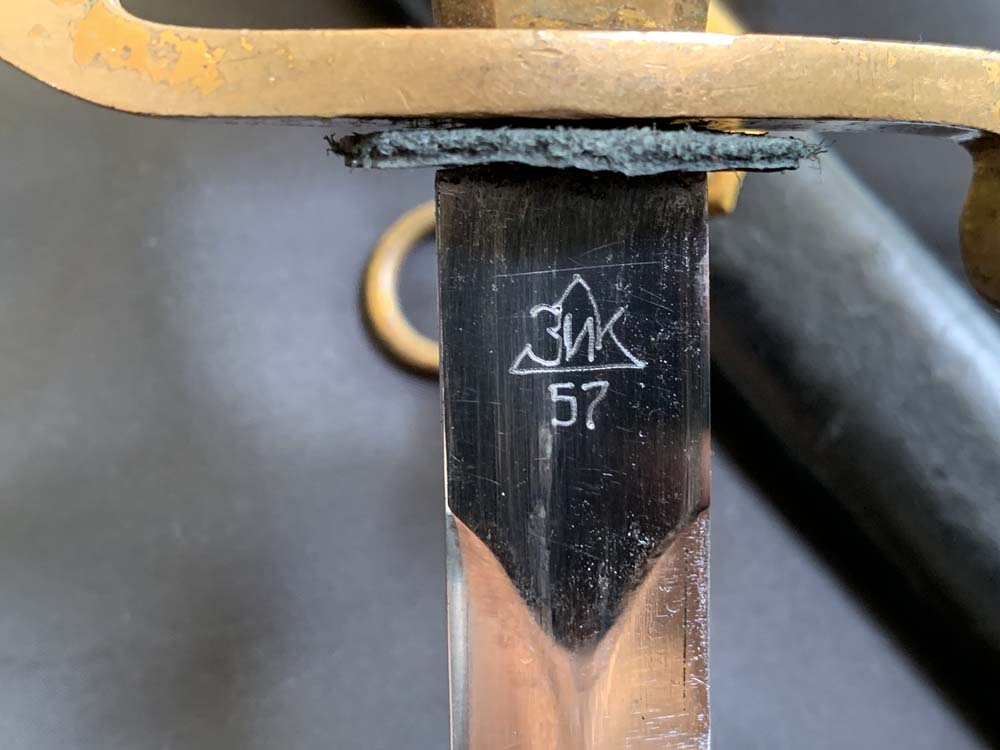 Клинок прямой двулезвийный, клинок ромбического сечения. Клинок состоит из боевой части, пяты и хвостовика с резьбой, на который надевается эфес. На пяте клинка расположены клейма. Клеймо производителя и год выпуска «ЗИК 57» и с обратной стороны серийный номер «Х08895»