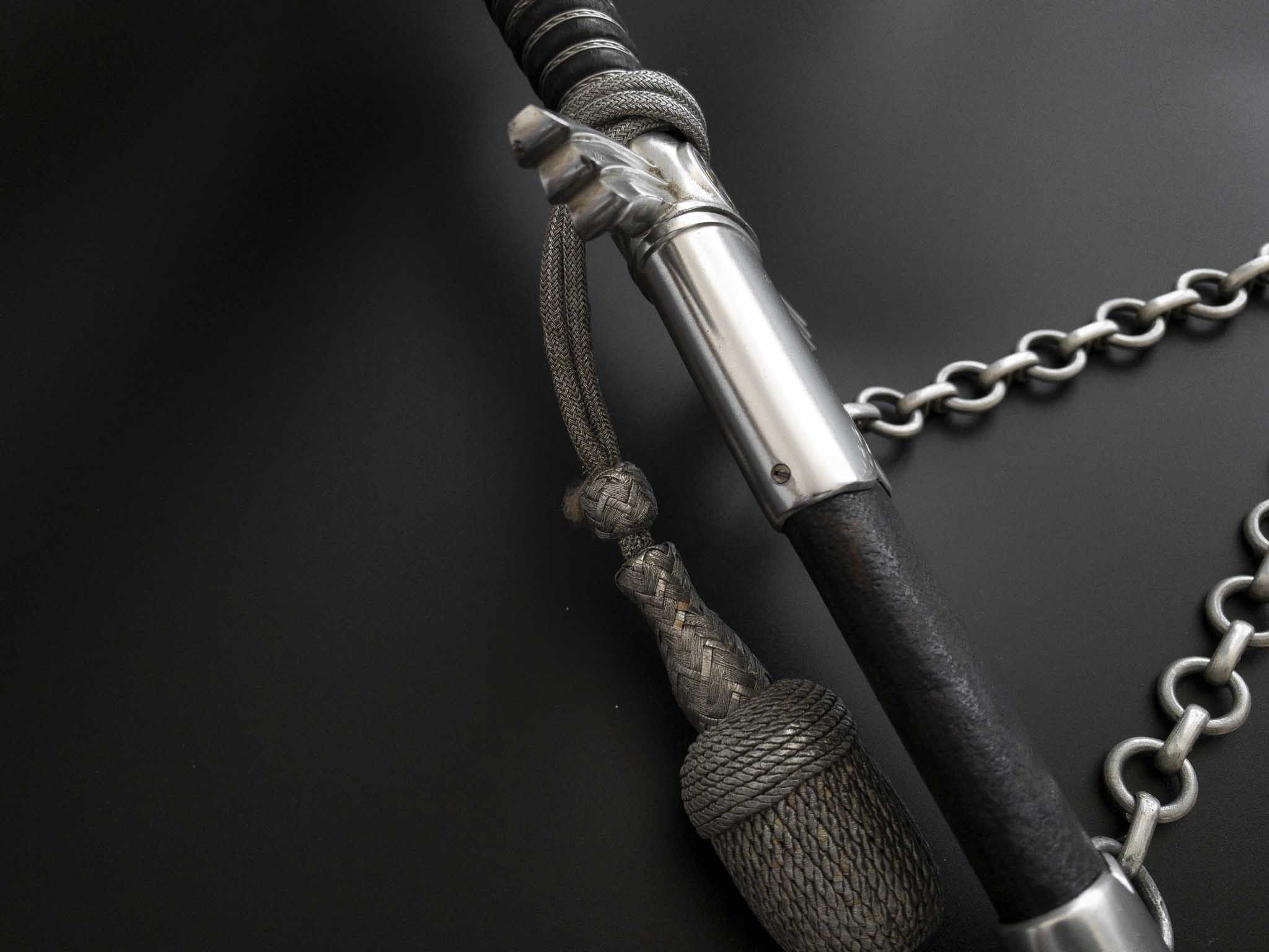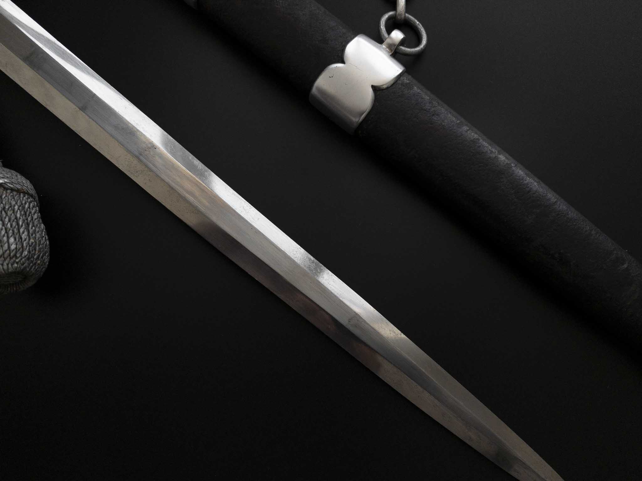 В ранних образцах металлические детали эфеса и прибора ножен изготовлялись из мельхиора с анадировкой тонким слоем серебра в 1-2 микрона, в последующих образцах в качестве основы применялся полированный алюминий с анадировкой серебра в 4-5 микрон, а свастика анодировалась позолотой.
