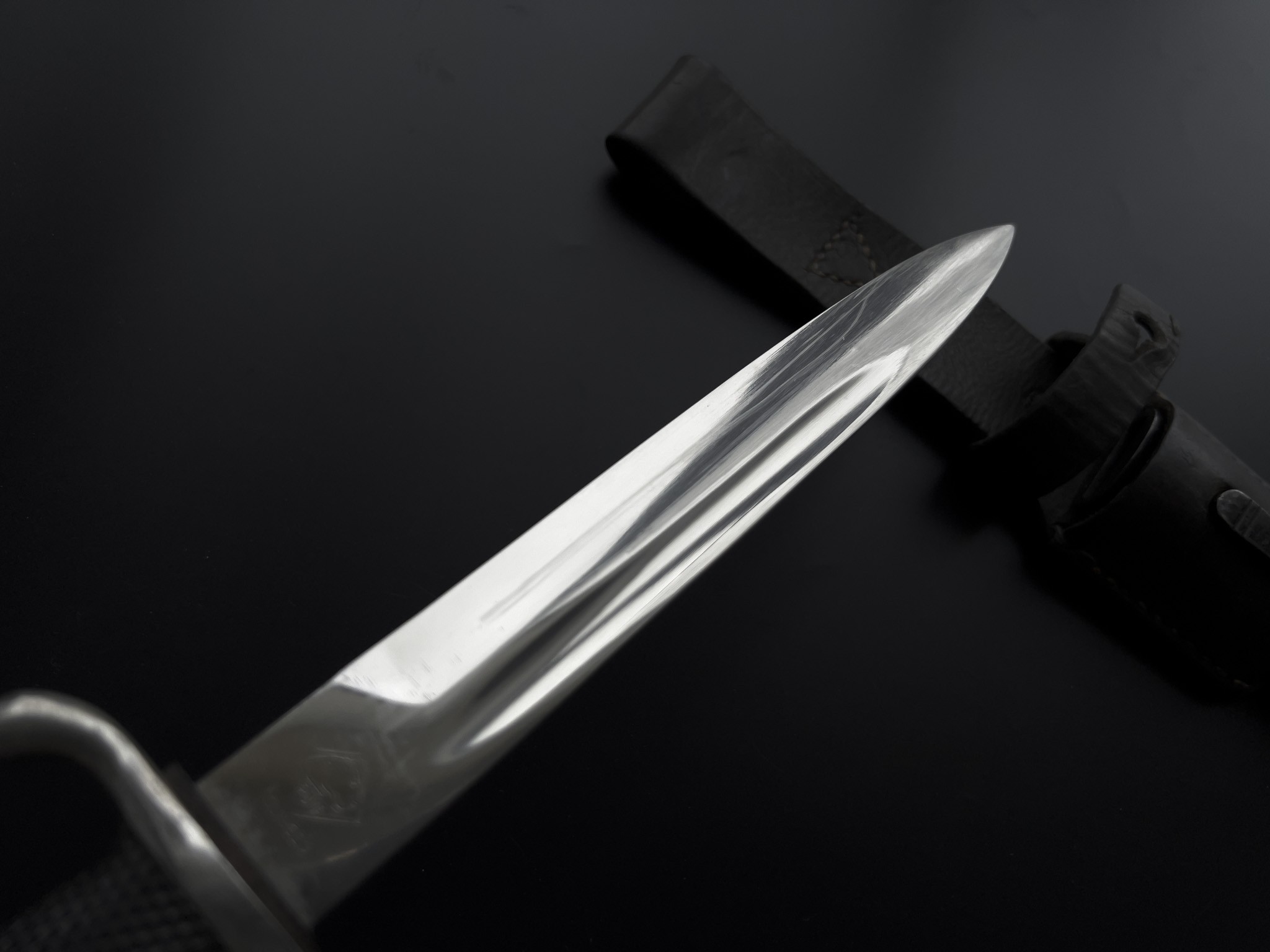 Клинок штыка прямой, однолезвийный, никелированный с узким долом с обеих сторон. На пяте клинка на левой стороне клинка нанесено клеймо производителя «PUMA SOLINGEN».