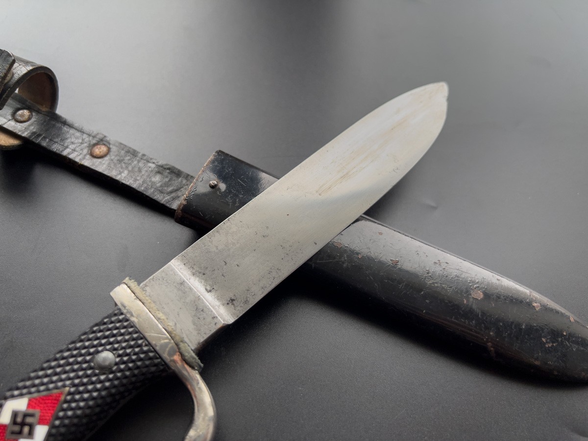 Этот антикварный нож Гитлерюгенд — редкий переходной образец, использовавшийся в составе молодёжной организации НСДАП «Гитлерюгенд» в период с 1933 по 1945 годы. Нож был изготовлен фирмой Klittermann Haan & Moog Solingen, известной своим качеством ножей и других резных изделий.