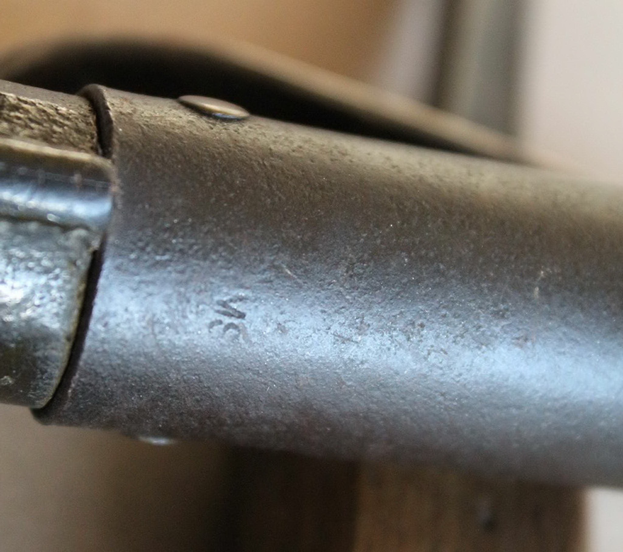 Кожаные ножны имеют металлические устье и наконечник. Посредством двойного крюка ножны легко можно было подвесить на ремень Belt M 1910 или Belt M 1903 для пехоты или кавалерии. На устье есть клейма приемки «H.E.» и «MS». На кожаной части есть вырезанная надпись «Jewell 1918«, что обозначает фирму производителя и год выпуска ножен.