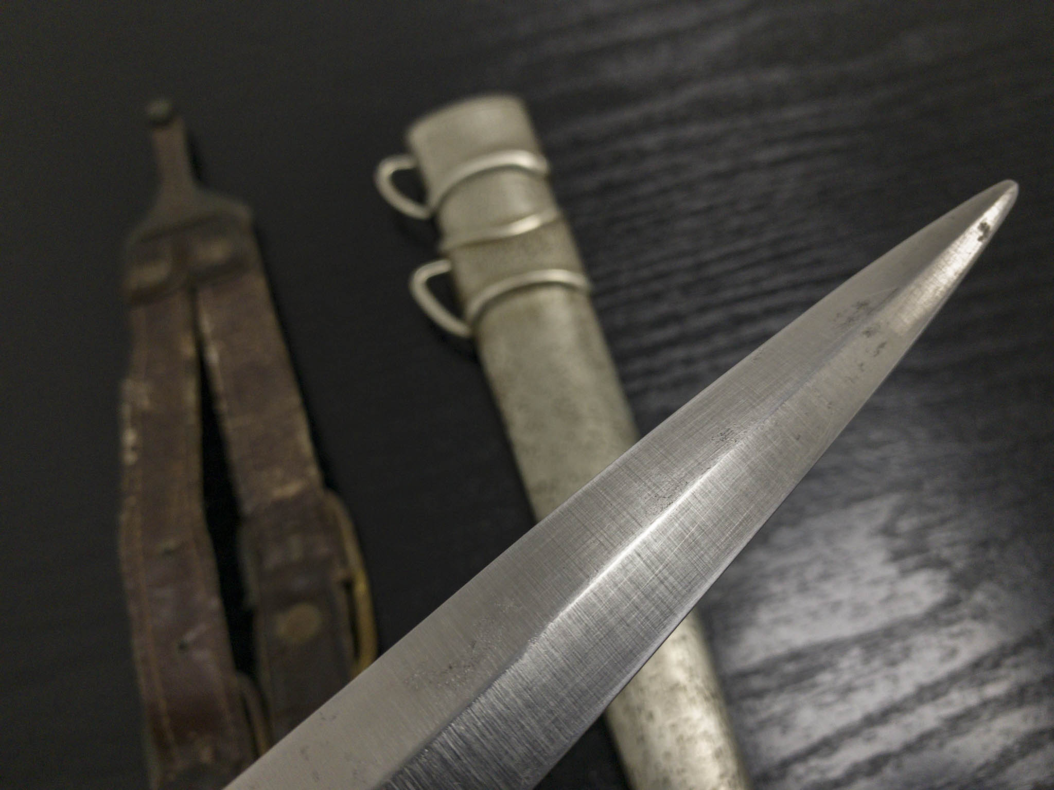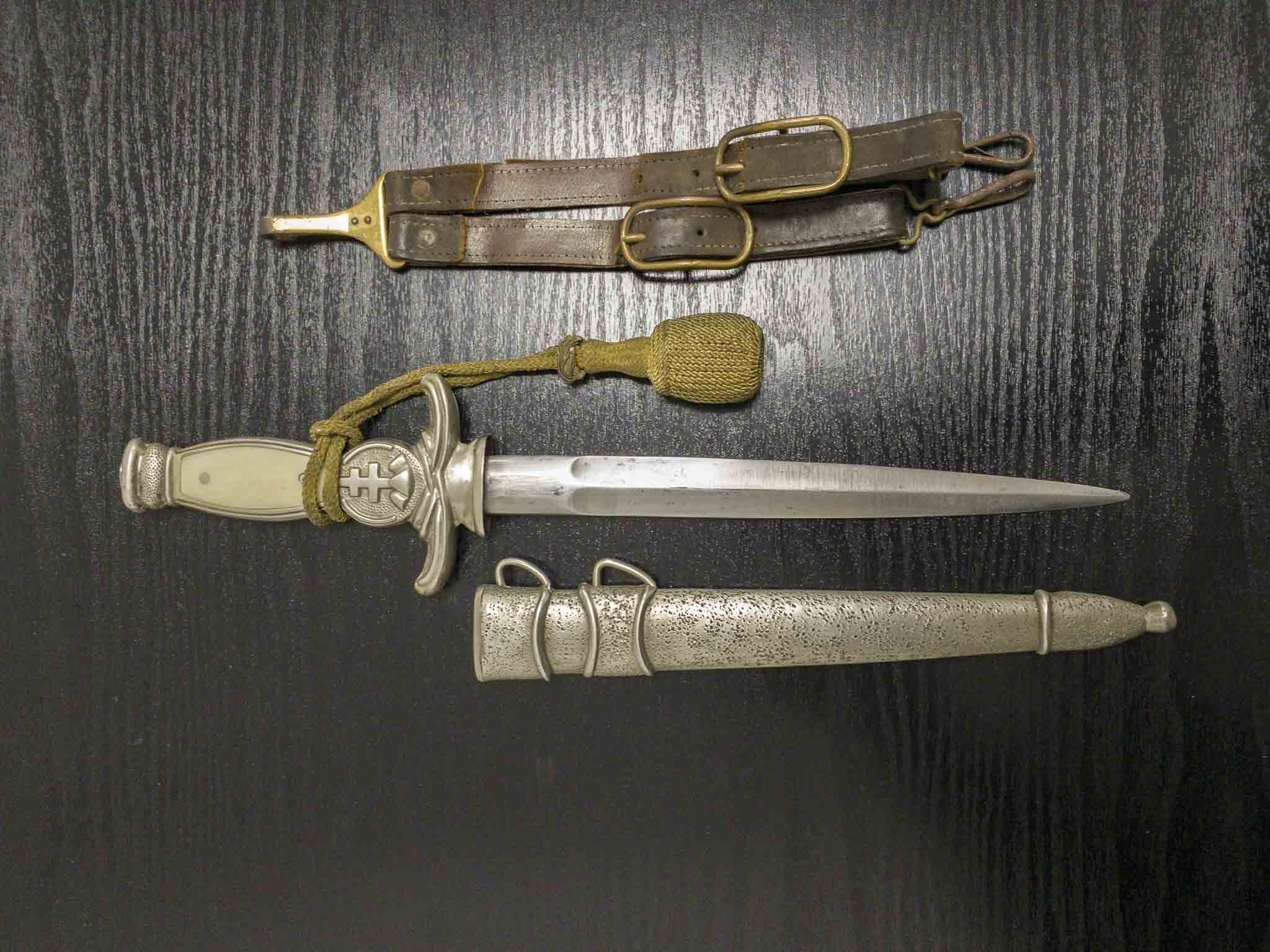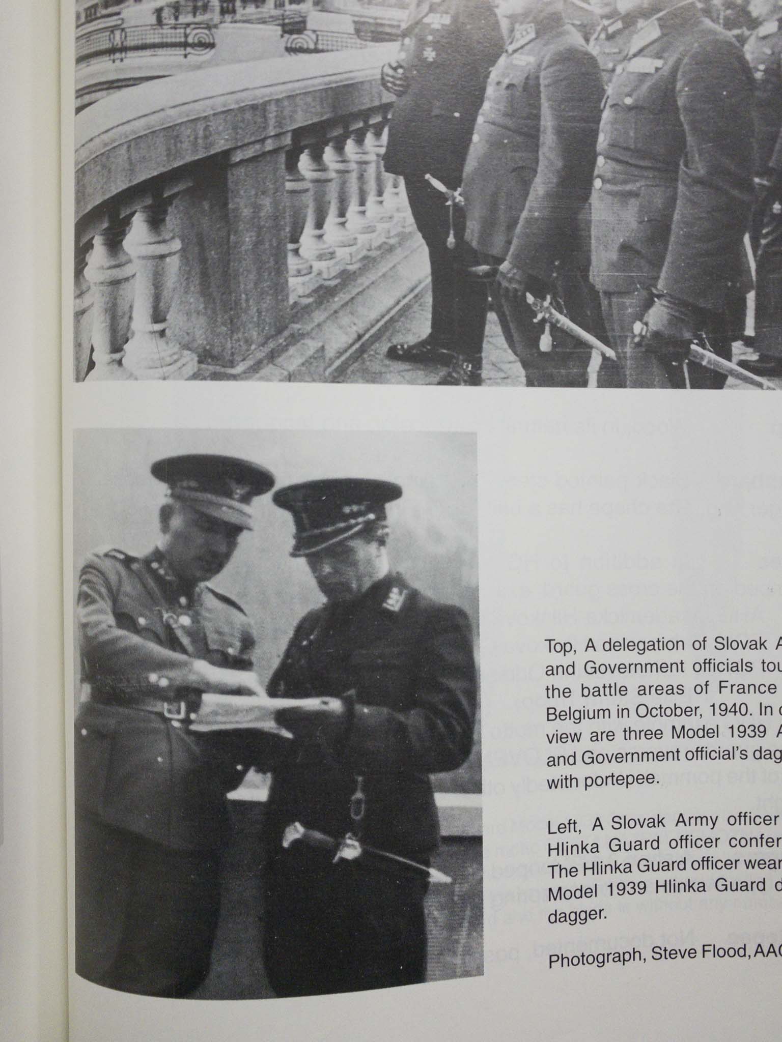 На фото ниже: делегация словацкой армии и правительственных чиновников, совершающая поездку по районам боевых действий Франции и Бельгии в октябре 1940 года. Хорошо видны три армейских кинжала образца 1939 года и правительственные чиновники в портупее.