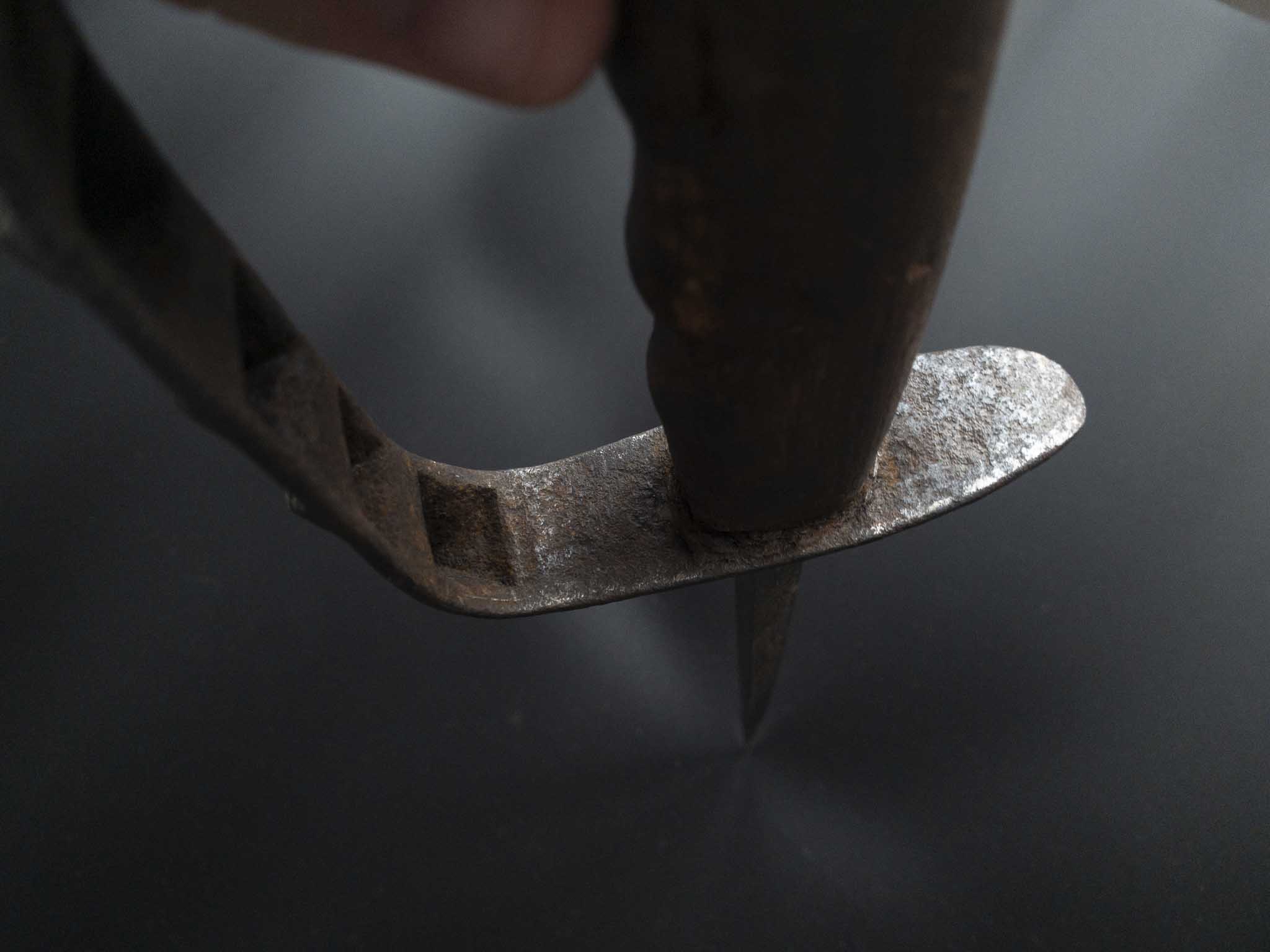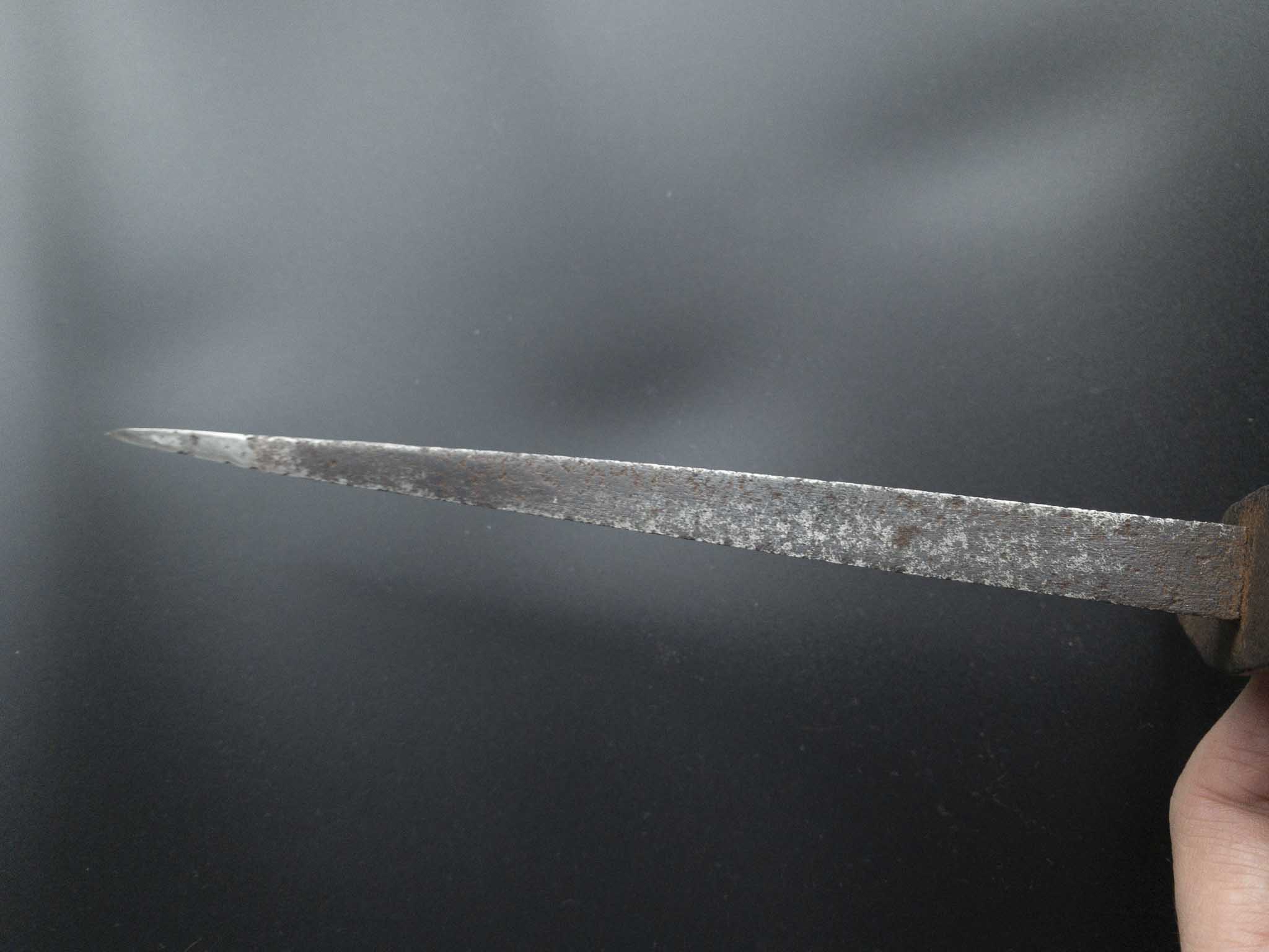 Клинок трехгранный, равномерно заостренный, сужающийся.