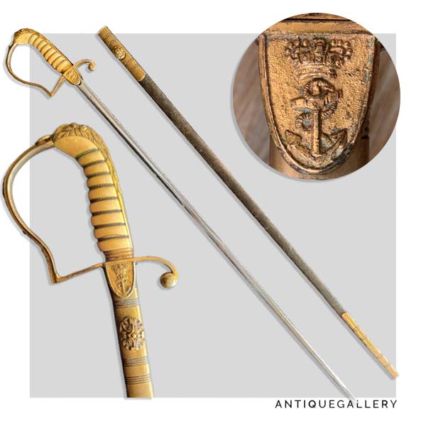 Возможно, это были старые семейные клинки, прикрепленные к новому эфесу образца 1805 года. Сохранилось всего несколько экземпляров с сохранившимся декором, много оружия встречается изношенным, выщербленным, без подлинных ножен. Па столь плохое состояние клинков сильно повлияло воздействие соленой воды.