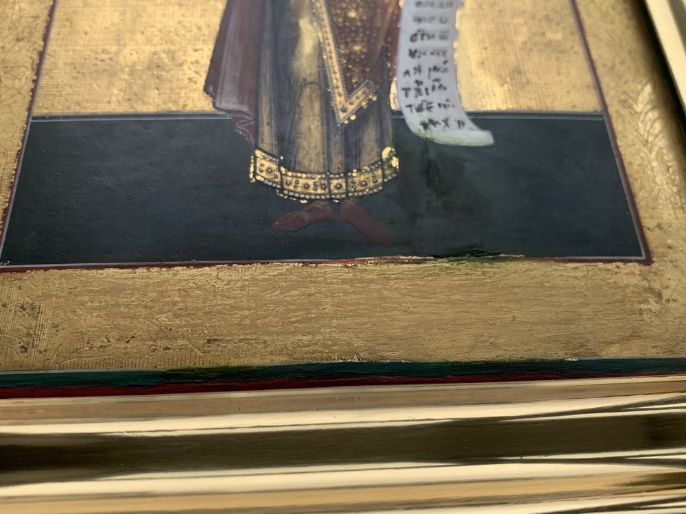 Икона святой Петр в киоте с одним предстоящим написана в Киеве в 1891 году