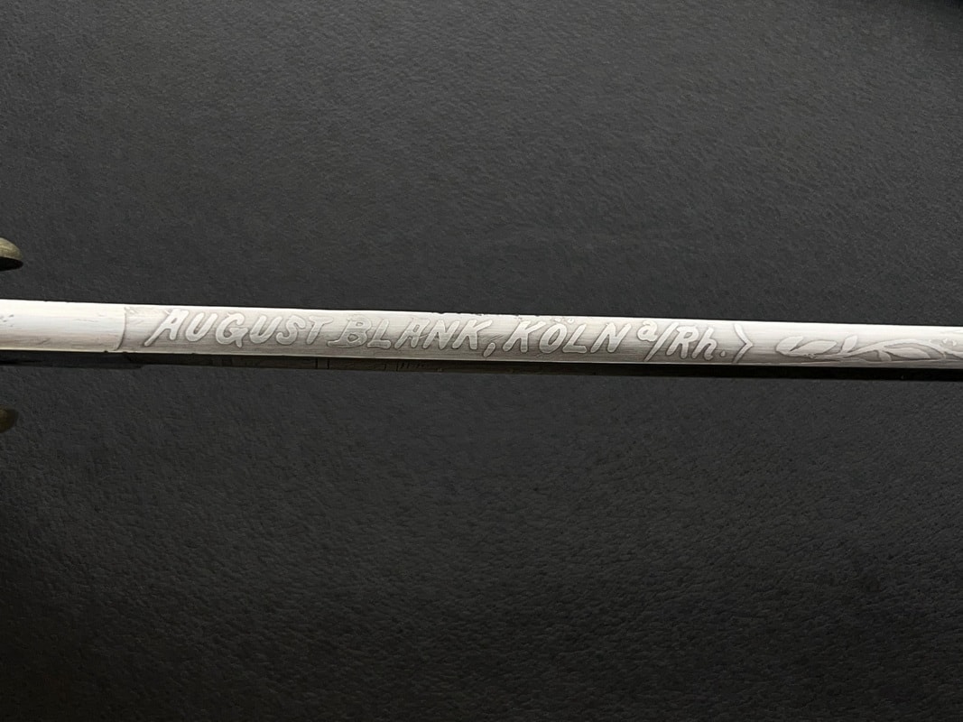5. Клейма и маркировка: Сабли, произведенные на заводе August Blank, обычно имеют клеймо с именем производителя и местом производства, например «AUG. BLANK COELN a/RH.» Это одно из главных идентификационных маркировок, указывающее на производителя.