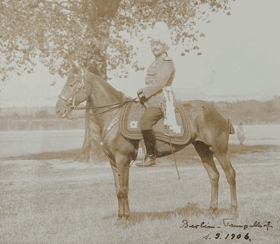 Редкая историческая фотография, сделанная в берлинском фотоателье «Rentzsch», находившемся по адресу улица Блюхера, 56 — непосредственно рядом с казармами 2-го драгунского полка. Об этом свидетельствует оригинальная подпись на обороте карточки, сохранившейся в подлинном виде.