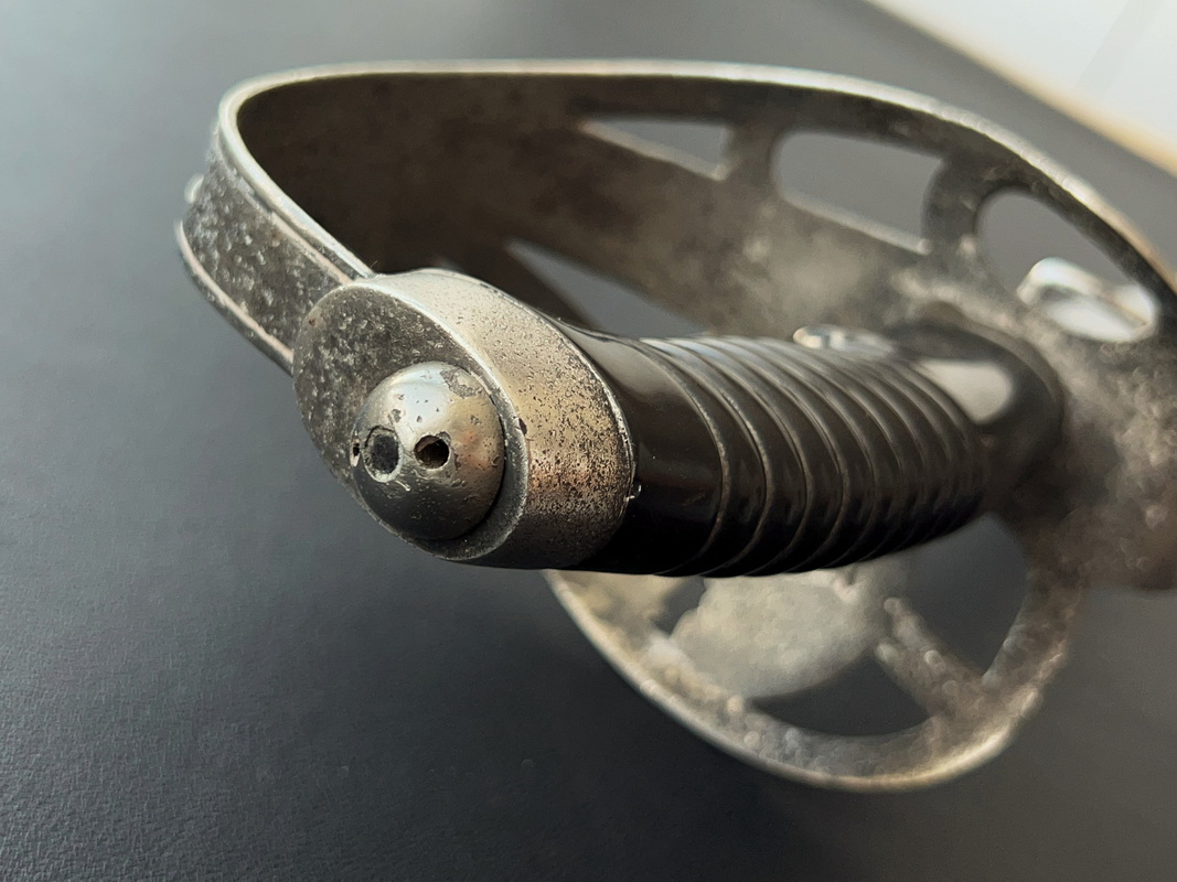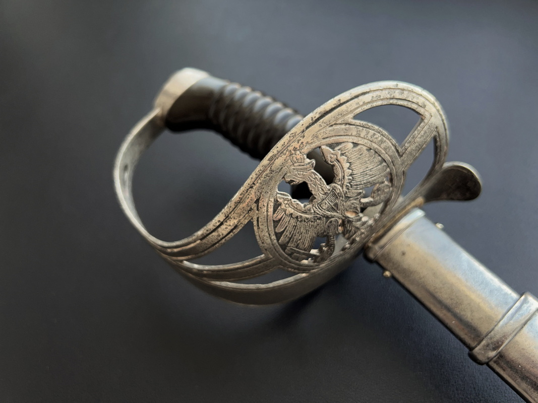 Эфес состоит из: Гарды с защитной планкой, украшенной изображением прусского орла. Бакелитовой рукояти с поперечными желобами. Навершия, соединенного с гардой защитной дужкой. Заклепки, фиксирующей головку с хвостовиком клинка.