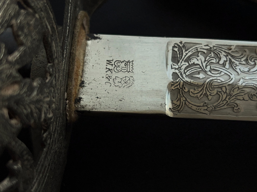 На пяте клинка размещено клеймо производителя – W.K.&C., одной из ведущих немецких компаний, производивших оружие для армии.