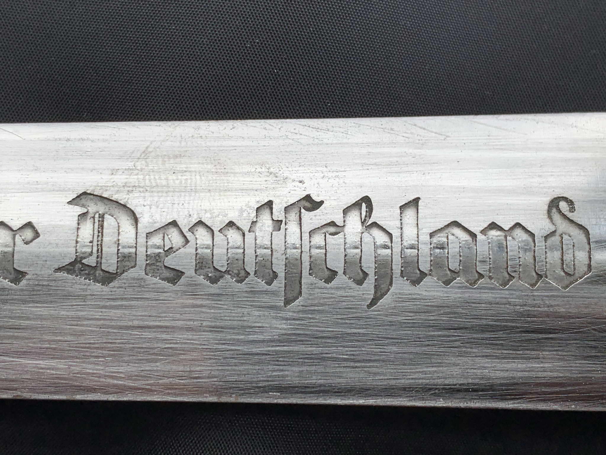 Клинок кинжала прямой, стальной, двулезвийный, кинжального типа, с выраженным центральным ребром. На лезвии имеется надпись «Alles Fur Deutchland» («Всё для Германии»). Клинок на оборотной стороне у основания стоит клеймо производителя F. Herder A.S. Solingen.