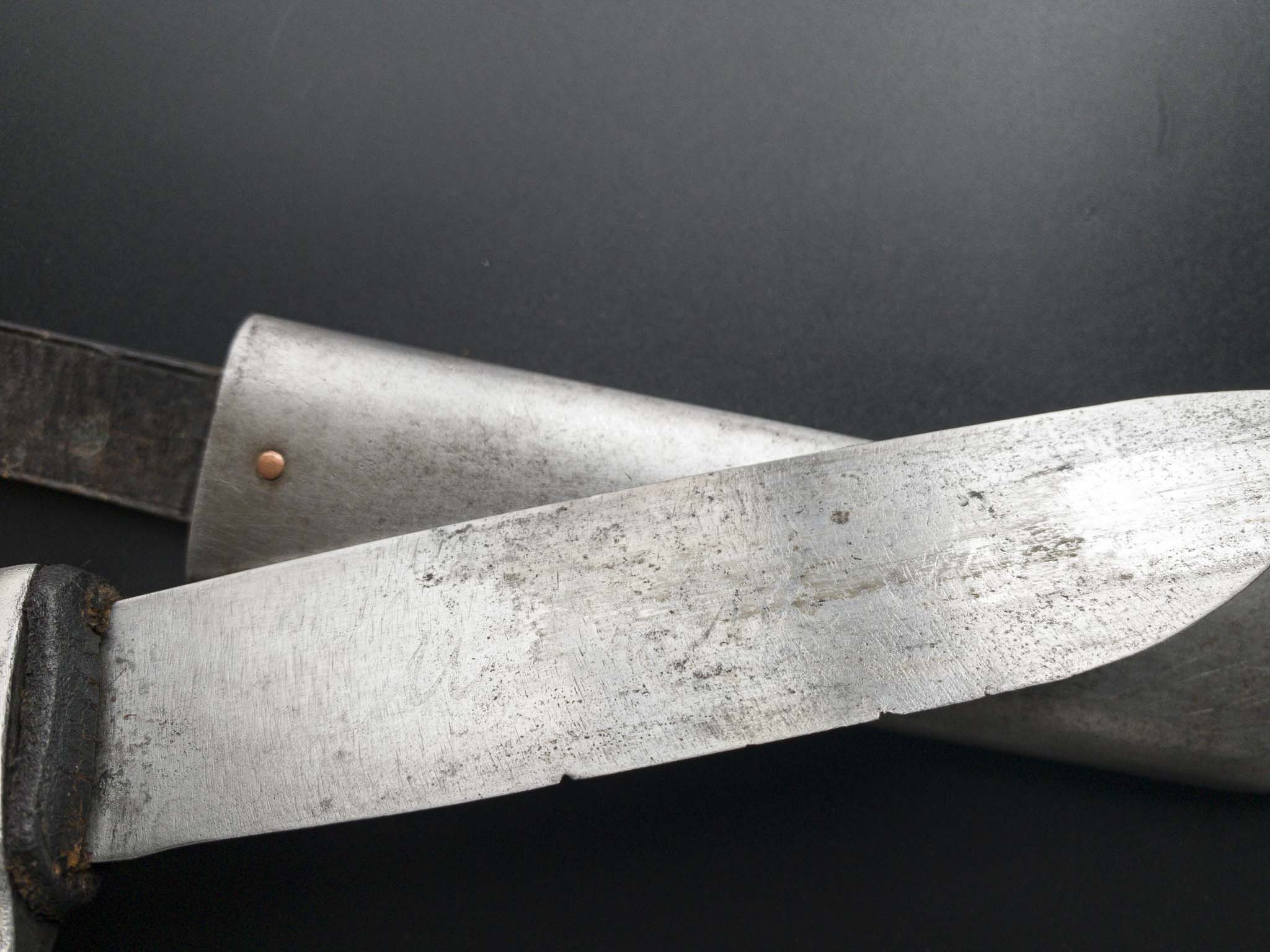 Клинок ножа Гитлерюгенд в царапинах и небольших зазубринах, не полированный.