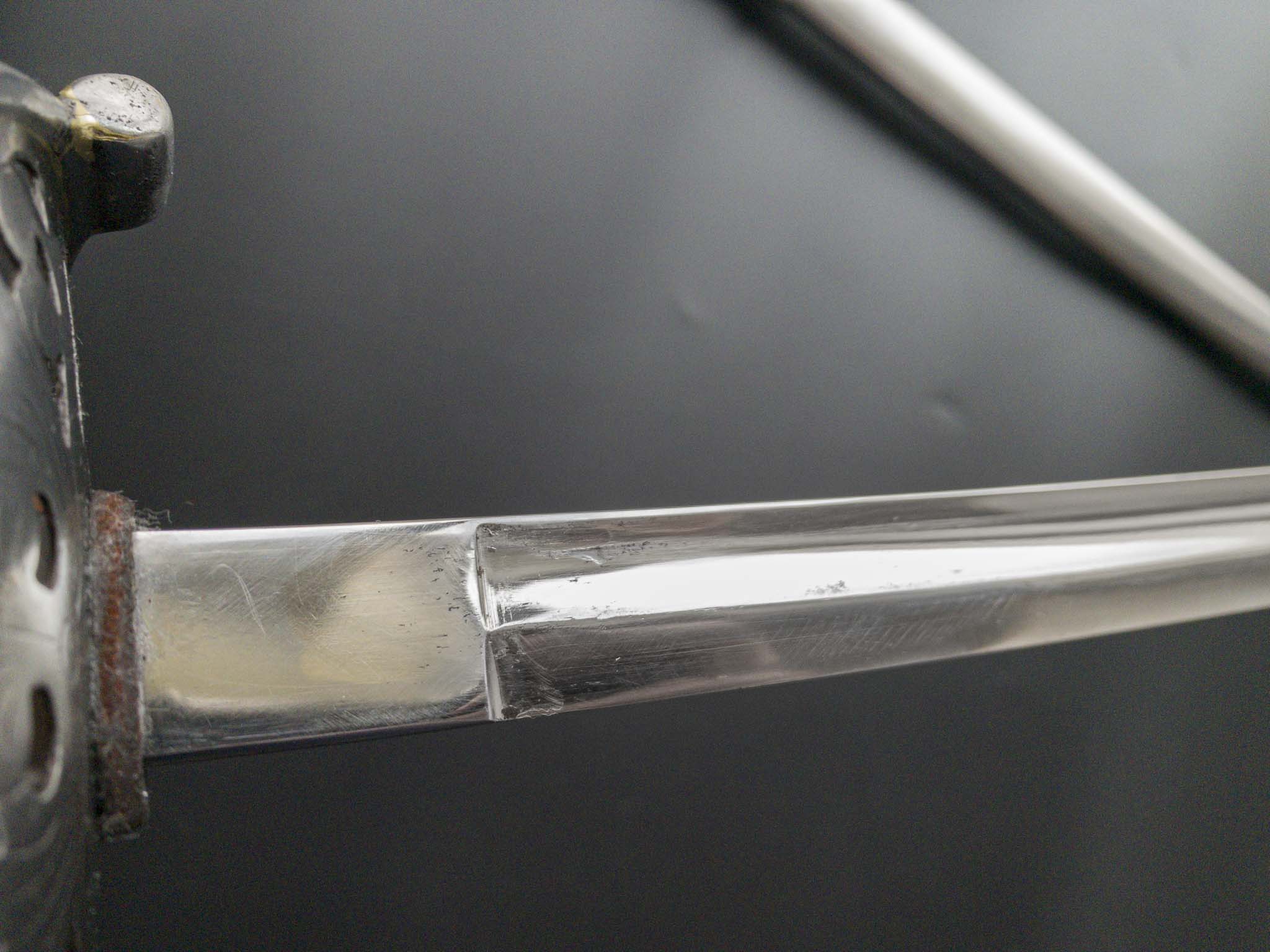 Клинок незначительной кривизны, однолезвийный, с широким долом на правой стороне. Боевой конец двулезвийный, ромбического сечения. На пяте клинка нанесено клеймо производителя, плохо читаемое, отчетливо надпись «Solingen», что дает нам возможность определить, страну производства: Германия.