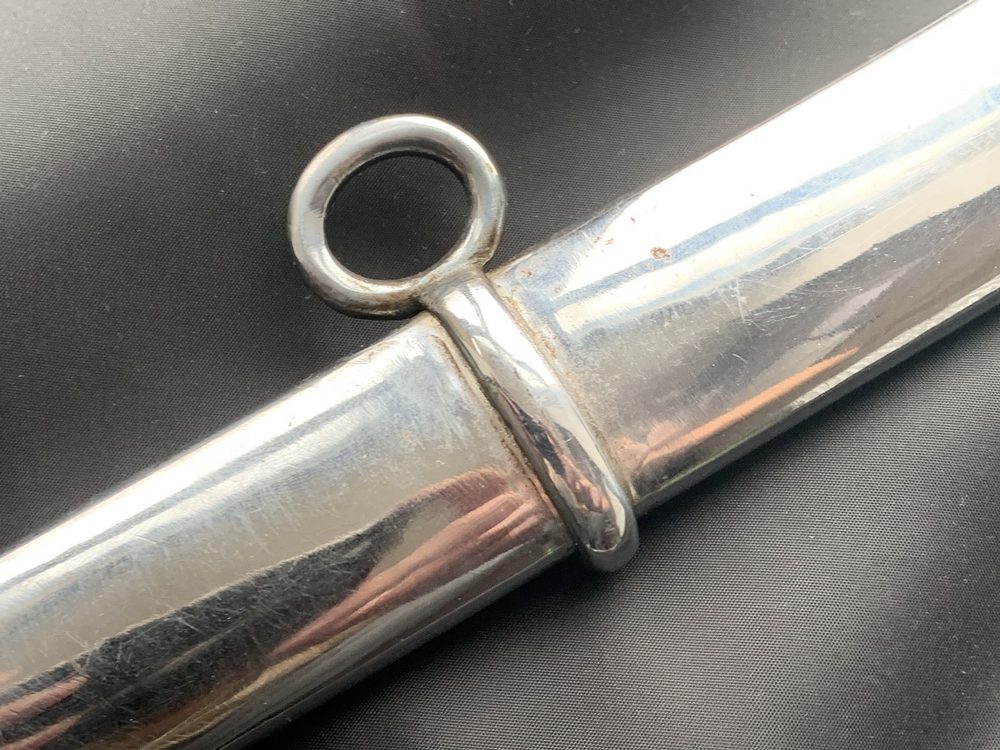 Ножны сабли цельнометаллические. Прибор включает две обоймицы (верхняя с припаянной скобой, нижняя – с кольцом) и узкий башмак.