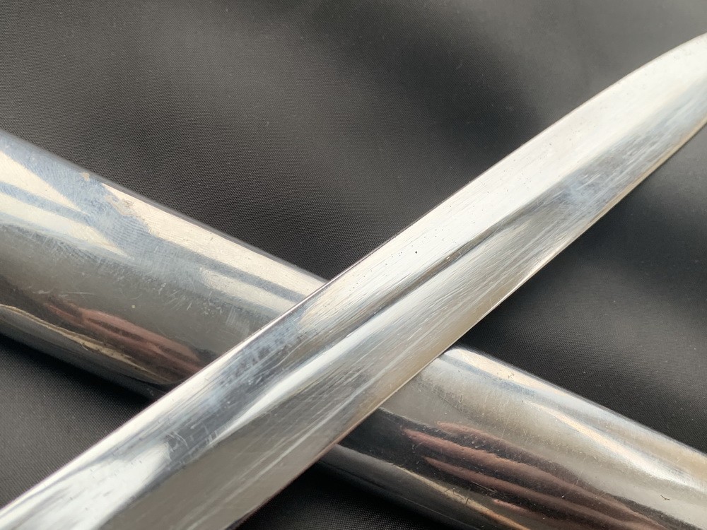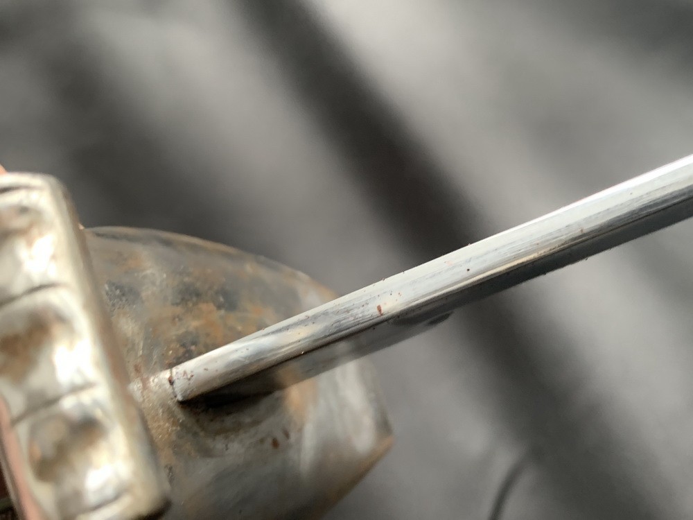 Клинок сабли стальной никелированный, узкий, незначительной кривизны, однолезвийный (боевой конец двулезвийный, остриё на средней линии), однодольный, с выделенной пятой. На пяте клеймо производителя «J. V. Garantirt SOLINGEN», с обратной стороны клеймо дистрибьютора -«Josef Zimbler Wein Eisenhauer».
