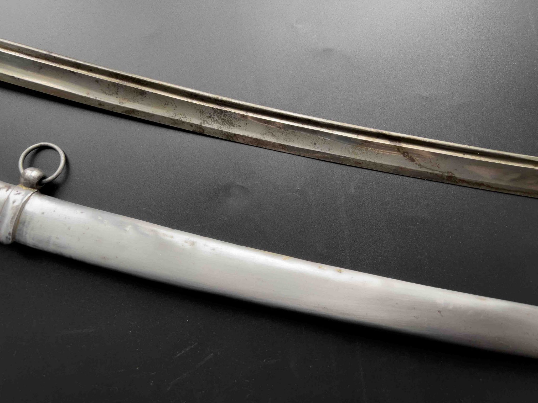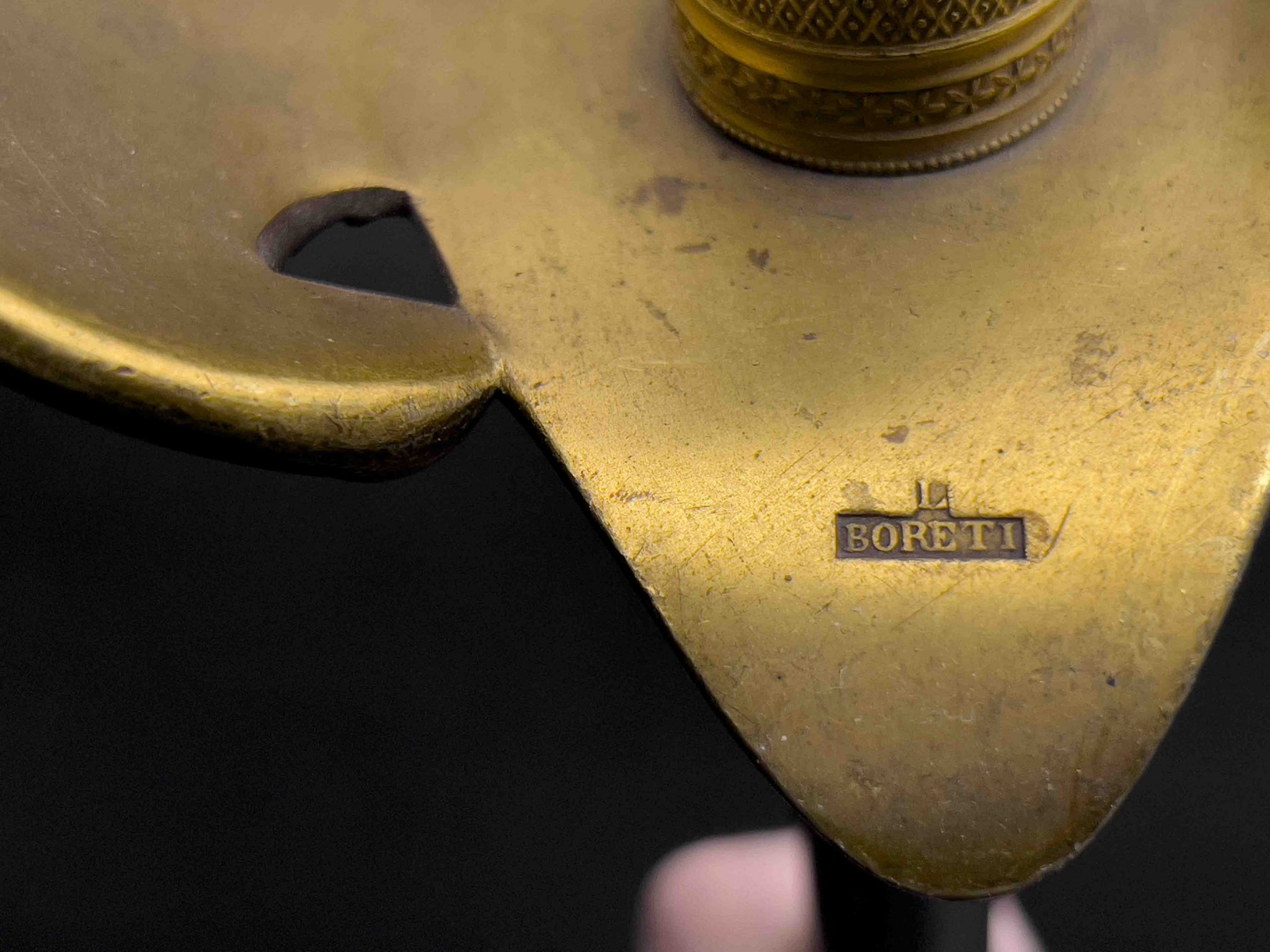 Сама сабля хорошо выполнена, большого размера. Имеет хорошо проделанный эфес клинка и позолоту, покрытую старинной патиной. Рукоятка выполнена из рога (имеет небольшой скол). На гарде нанесено клеймо L. BORETI (искусный промышленный мастер фехтования периода Фернандина).