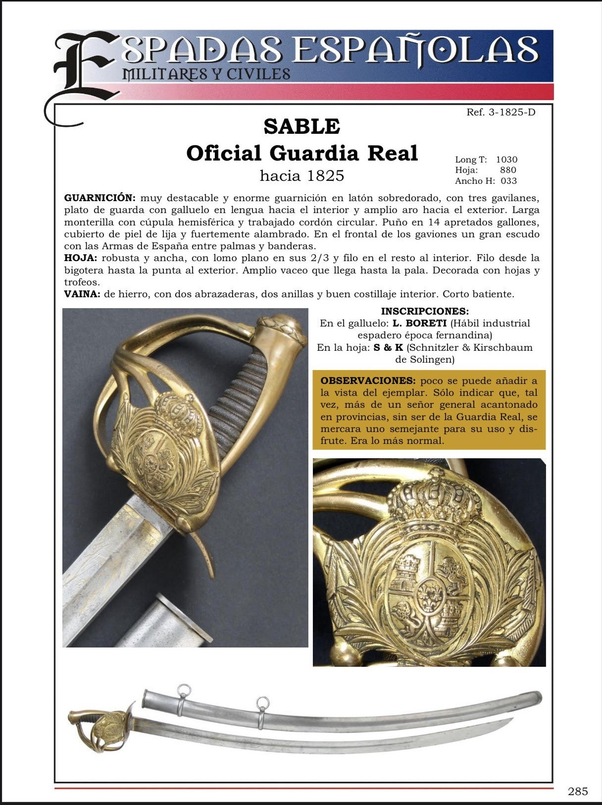 Дополнительная информация: Клинок сам германский, но принят на завод Толедо, «ANO D 18833» это дата 1883 год и 3 месяц, С другой стороны клинка сокращений надпись фабрики real fabrica de espadas de toledo.