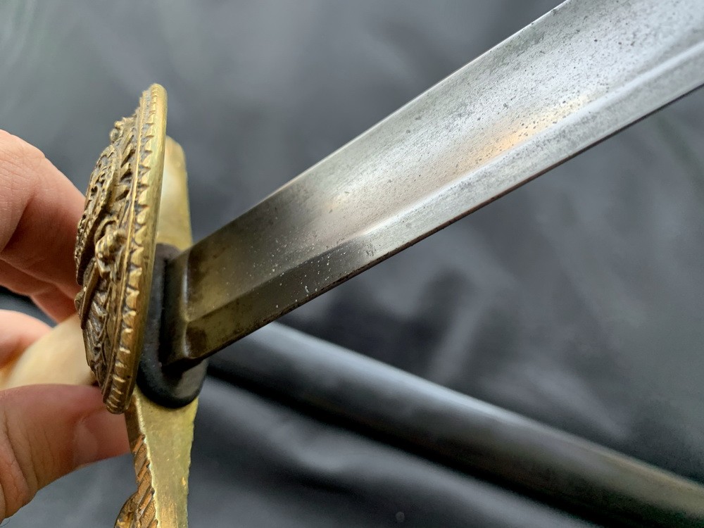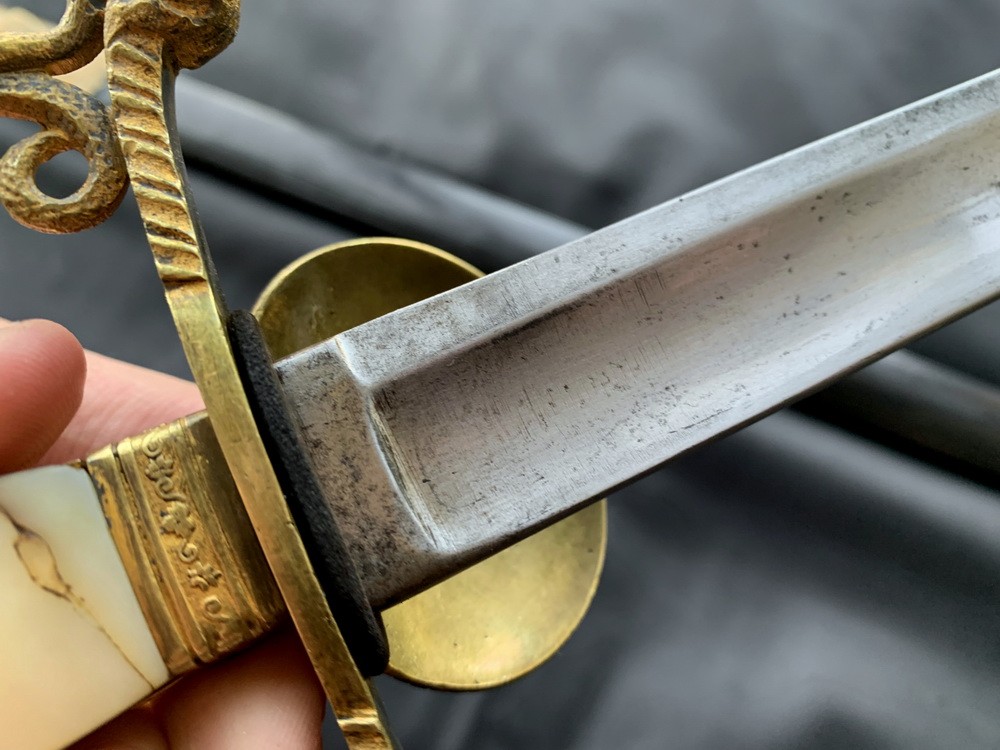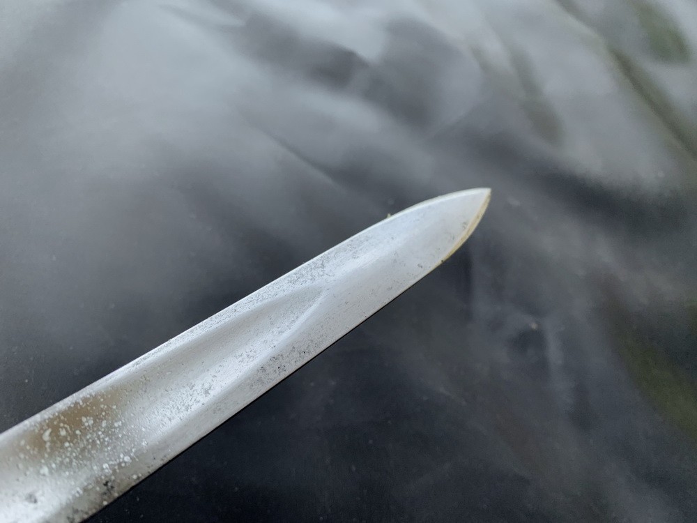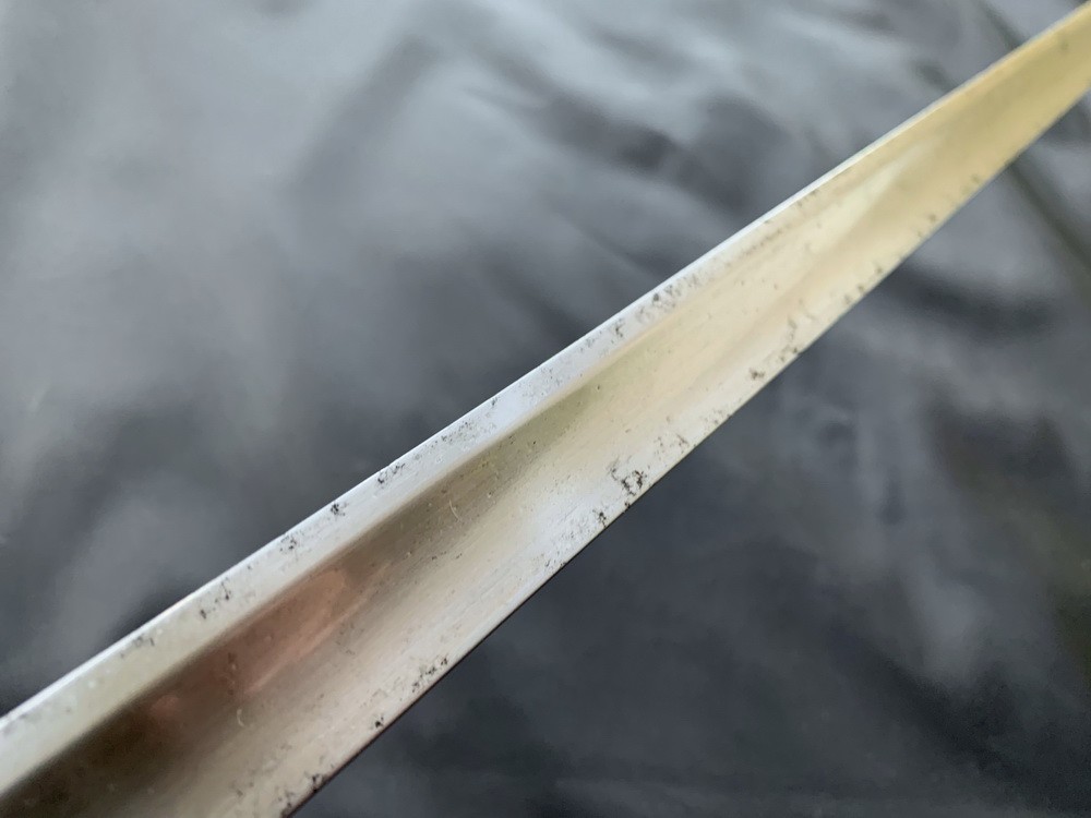 Клинок шпаги прямой однолезвийный с одним широким долом. Боевой конец двулезвийный.